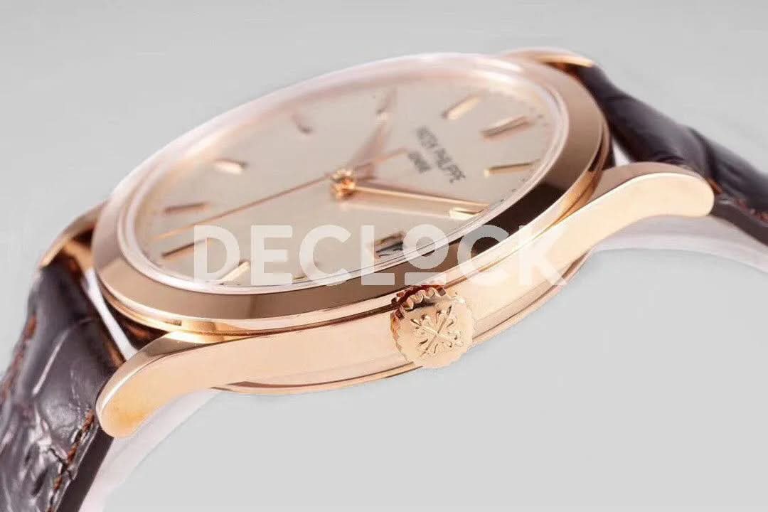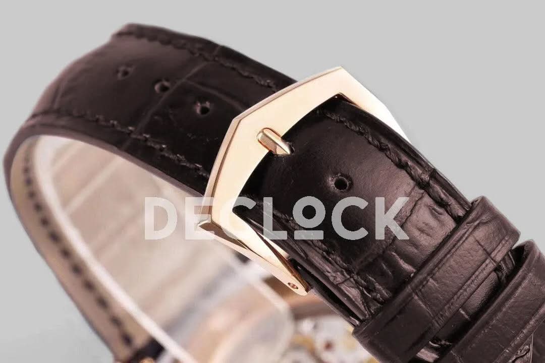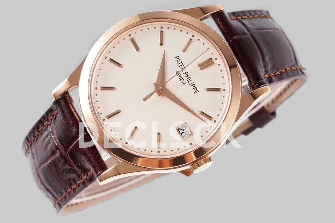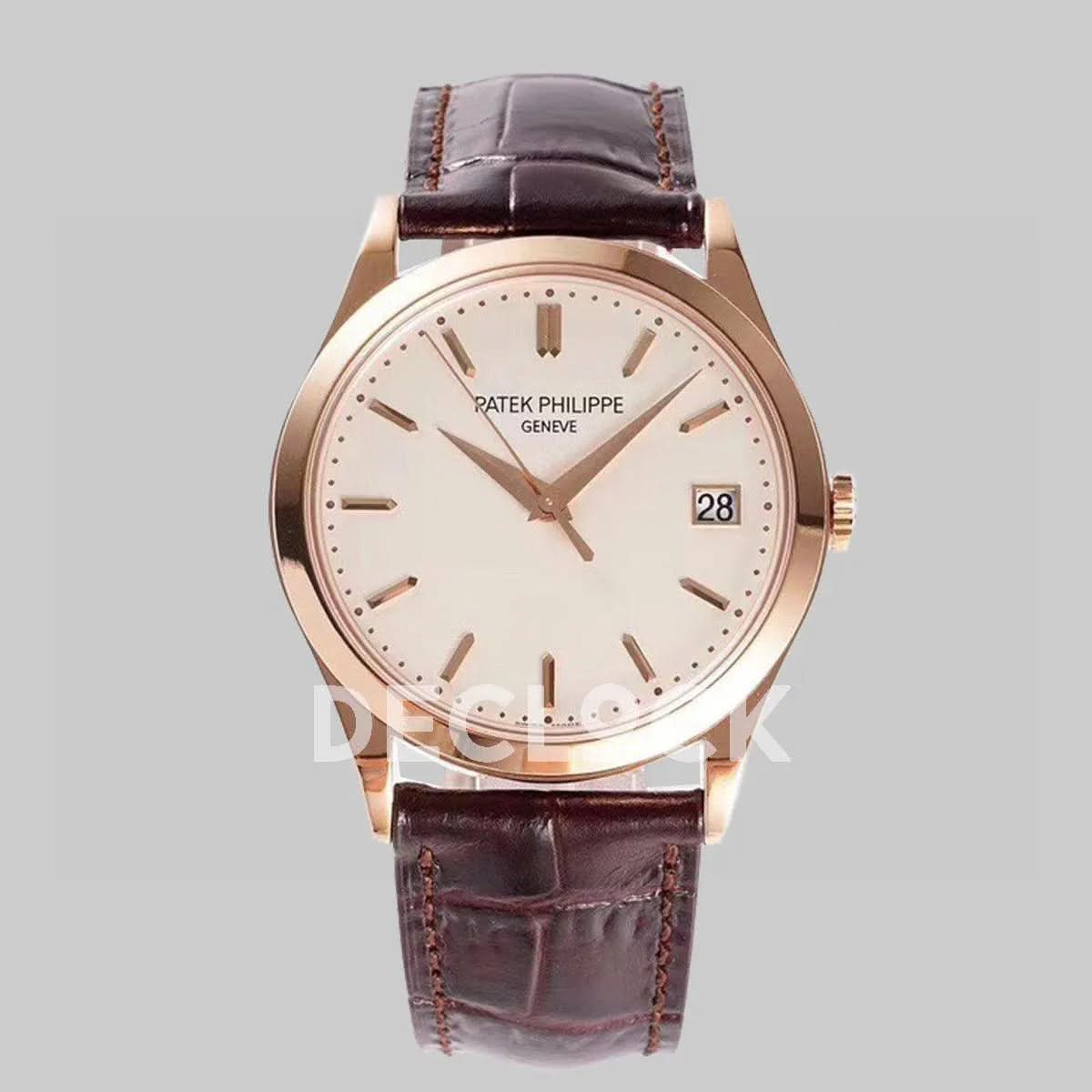 Replica Pattek Philippe Calatrava 5227 Rose Gold White Dial on Brown Leather Strap