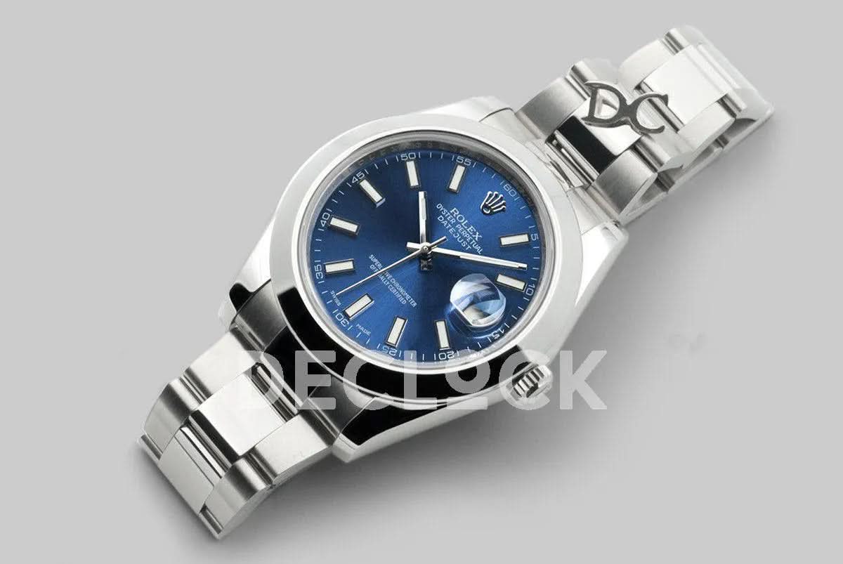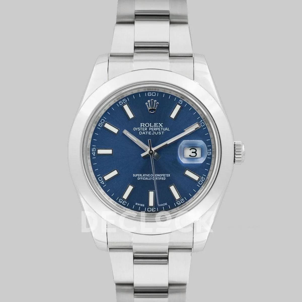 Μια από τις κορυφαίες αντιγραφές, ακριβής αναπαραγωγή του Datejust II 116300 με Μπλε καντράν και Stick Markers σε Oyster μπρασελέ και στεφάνη.