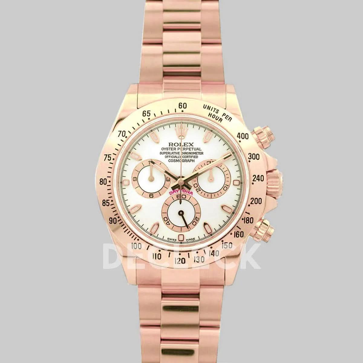 Replica Rolex Daytona 116528 White Dial with Rose Gold Bracelet