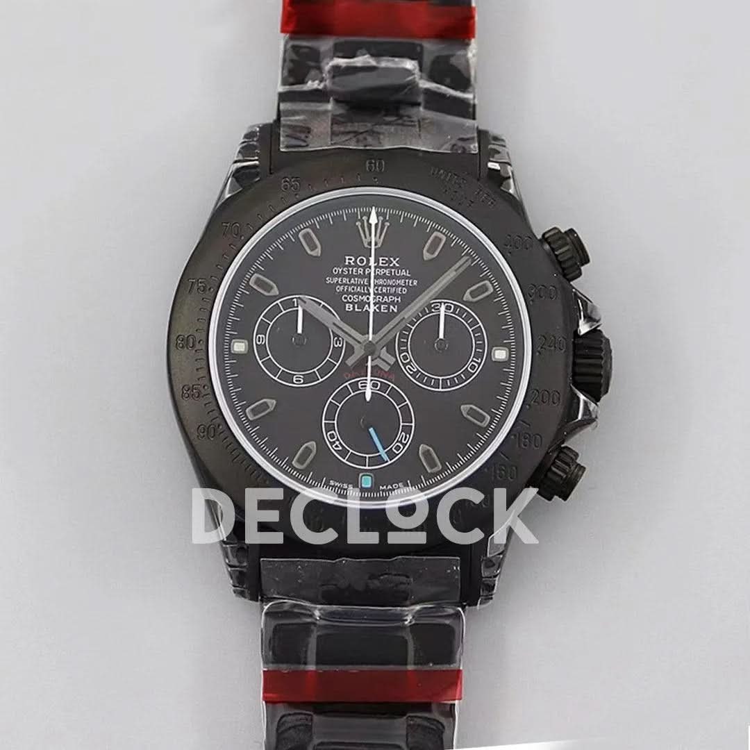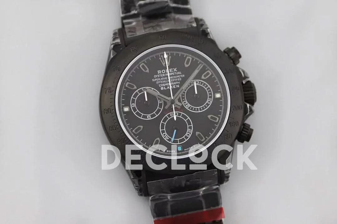 Replica Rolex Daytona Blaken Black DLC Bezel in Black Dial