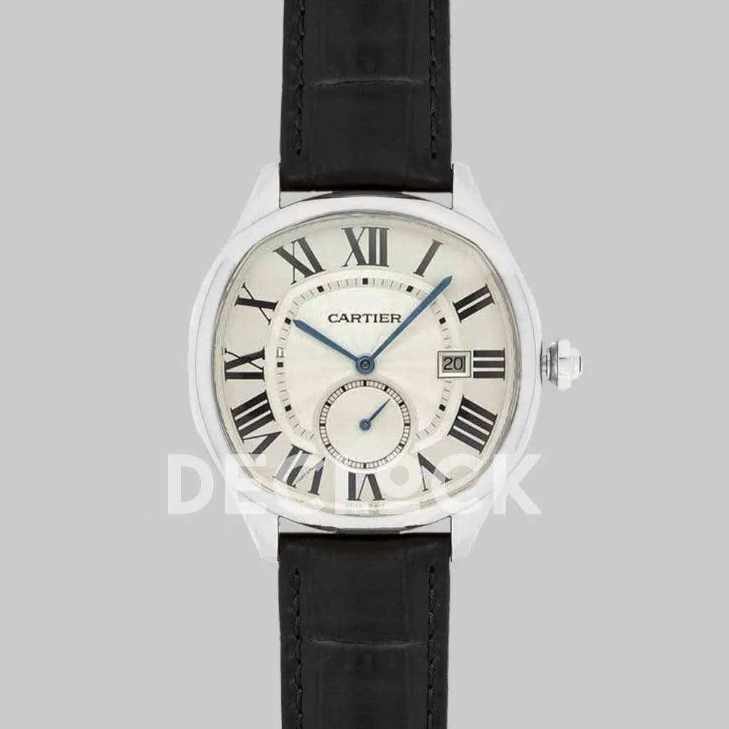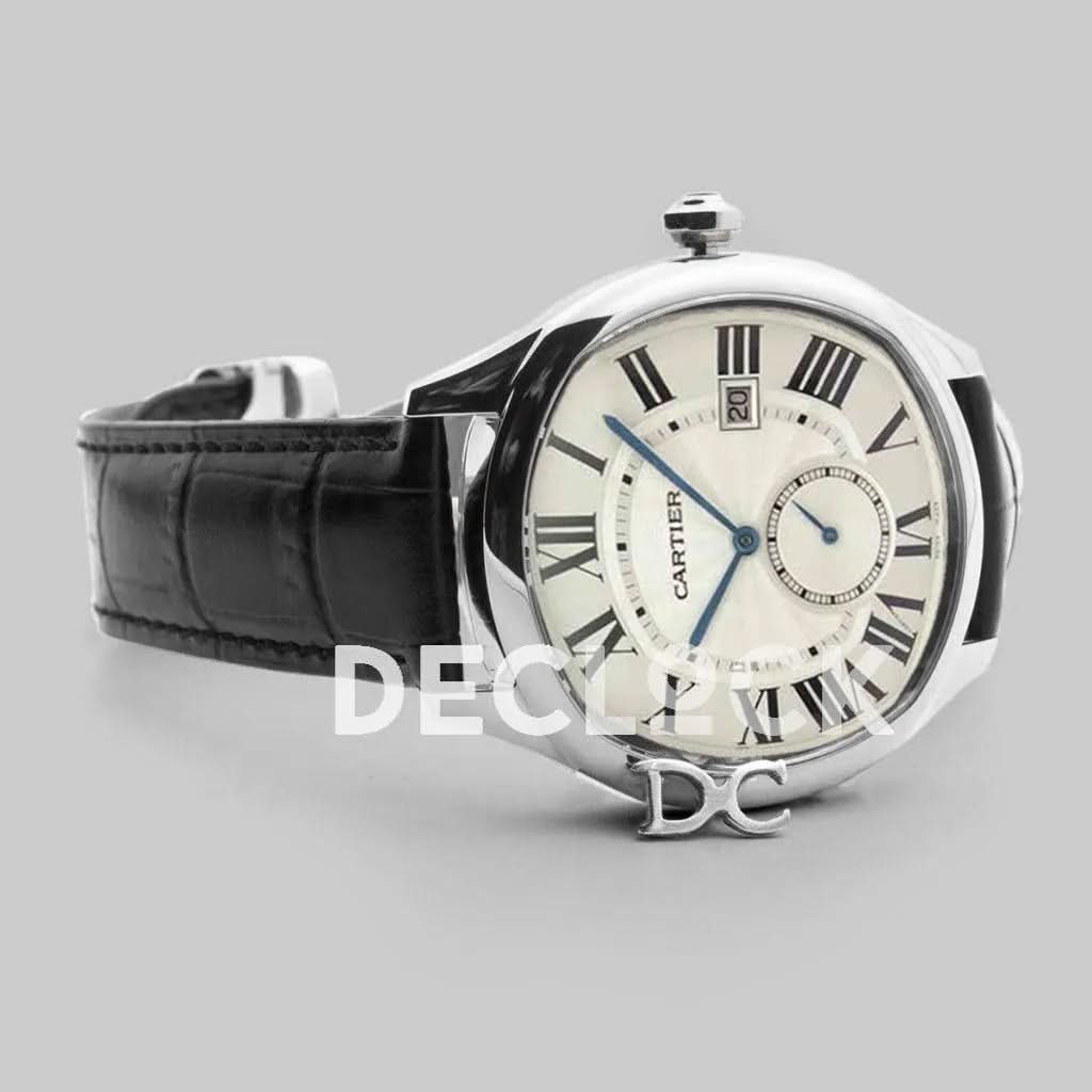 Replica Cartier Drive de Cartier White Dial in Steel on Black Leather Strap