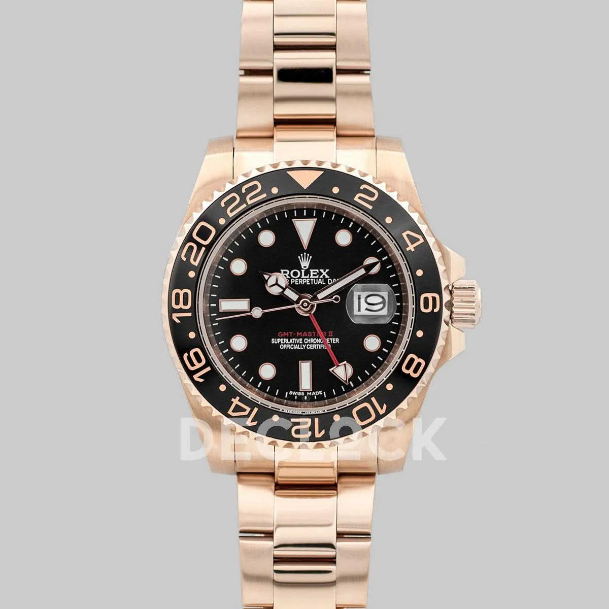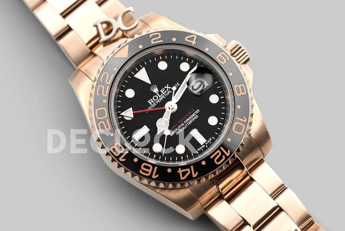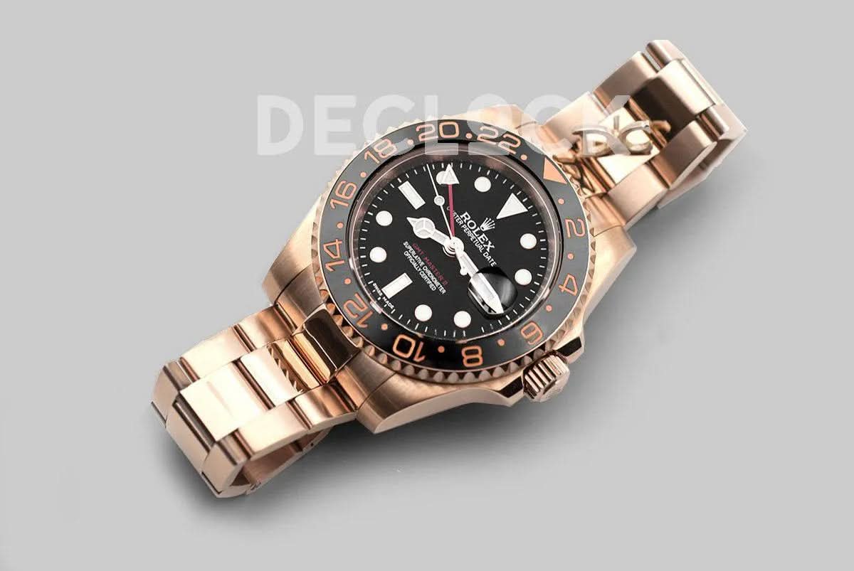 Μοναδική προσαρμοσμένη αναπαραγωγή του 116710 Rolex GMT Master II σε Rose Gold σε μπρασελέ.