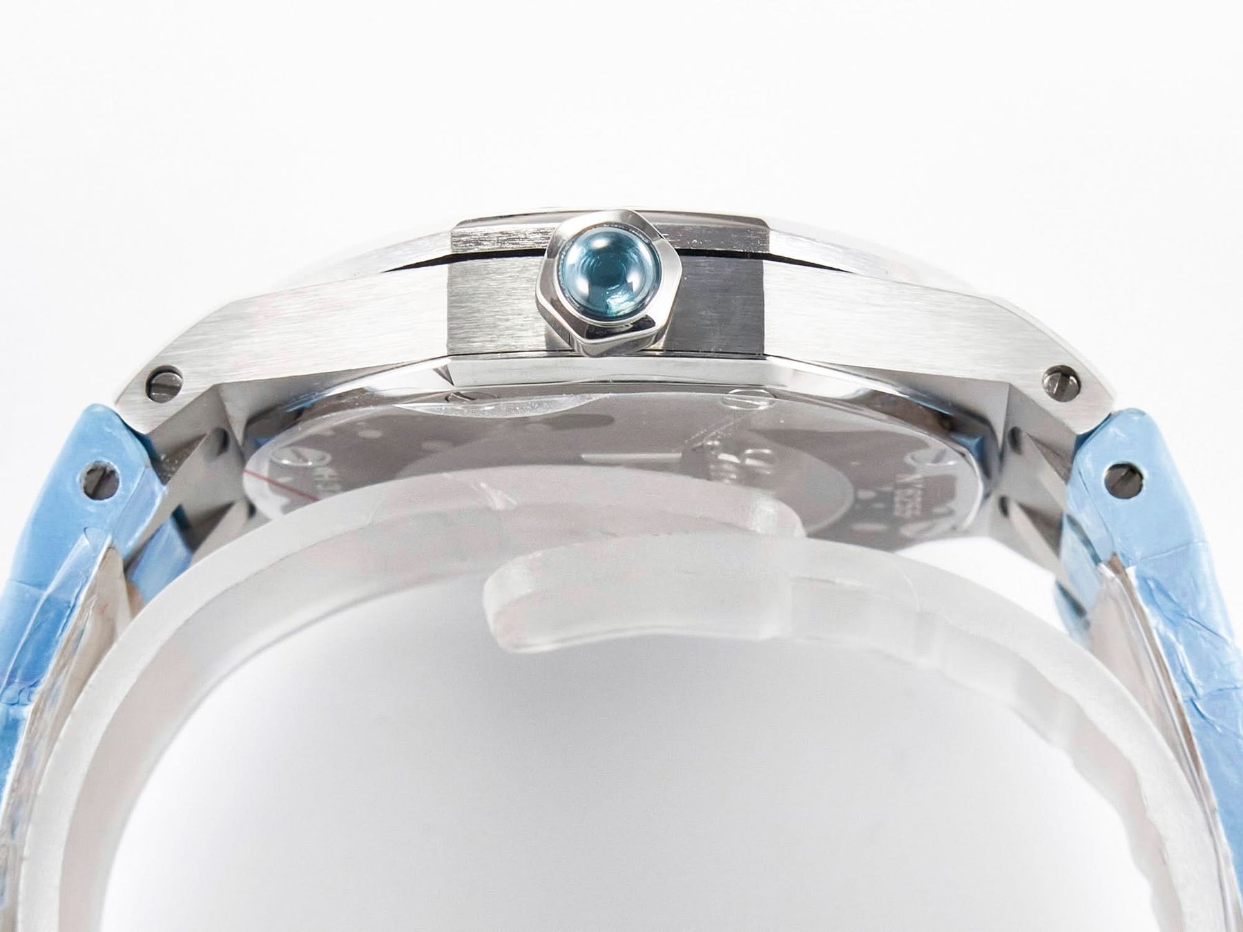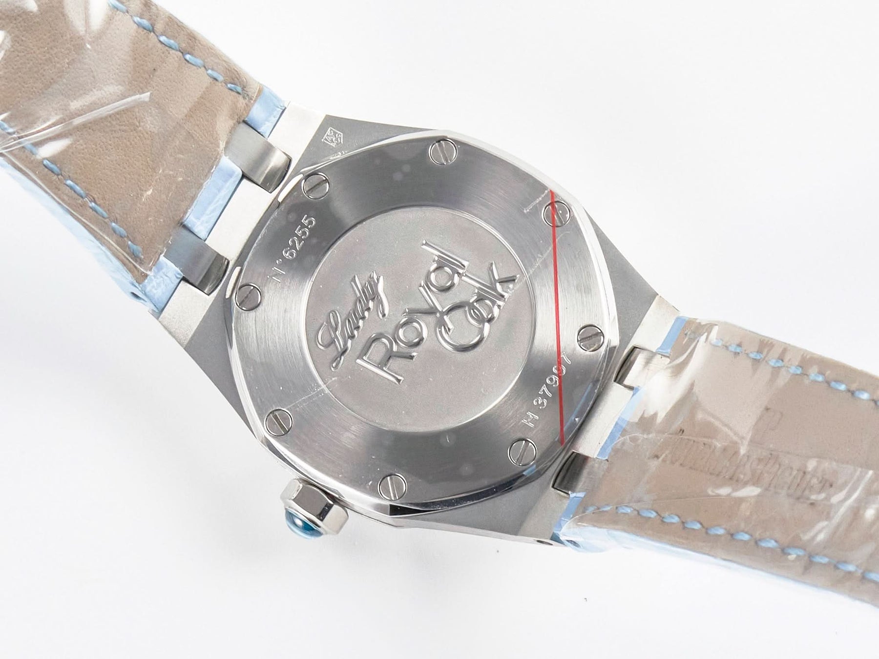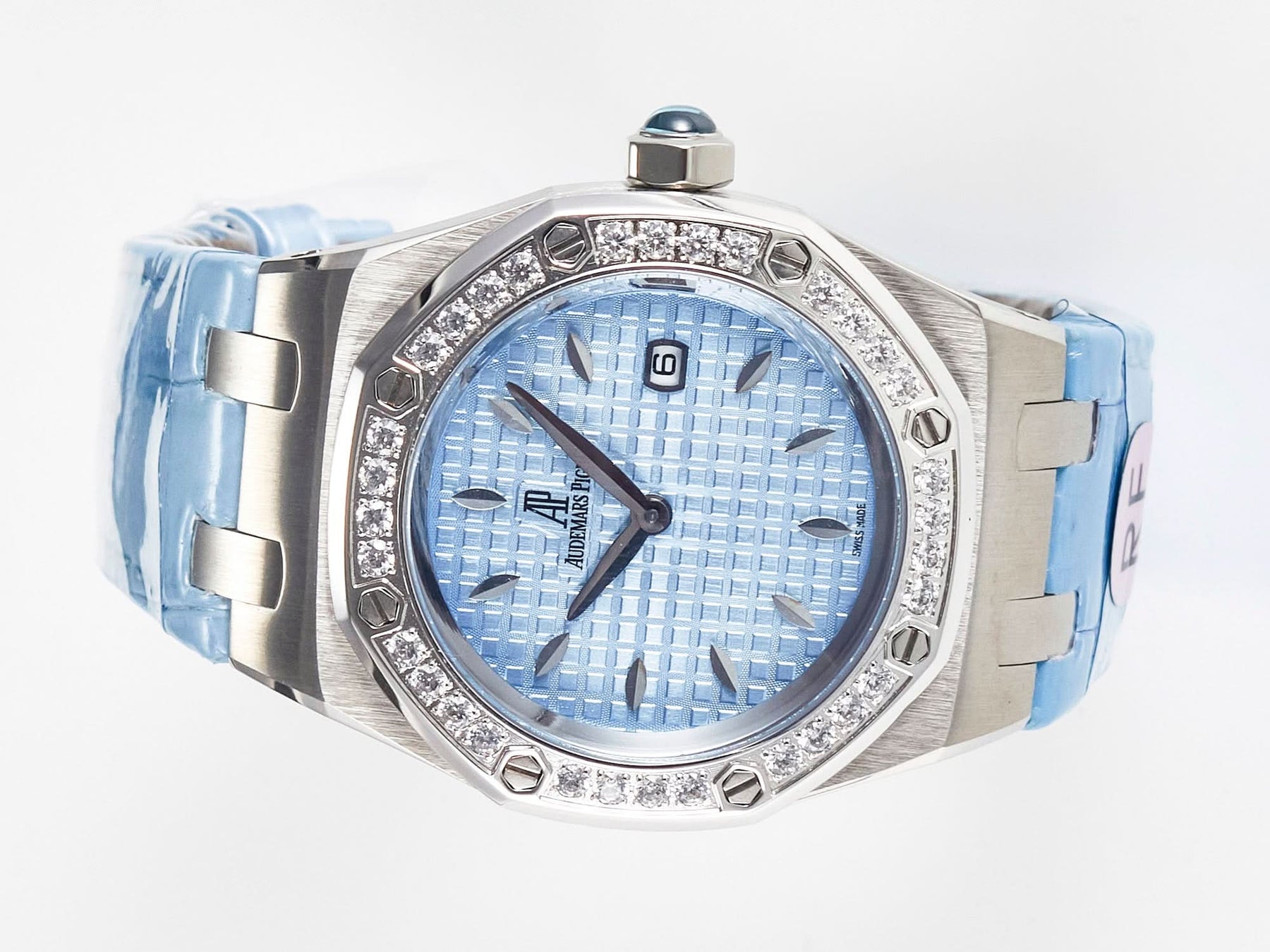 Royal Oak Offshore Ladies 33mm SS DRF Best Edition Blue Dial Diamonds Bezel on Blue Leather Strap