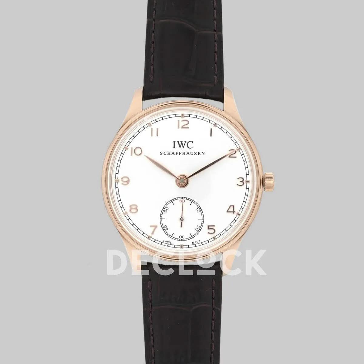 Replica IWC Portuguese Hand Wound Eight Days IW545409 White Dial in Rose Gold