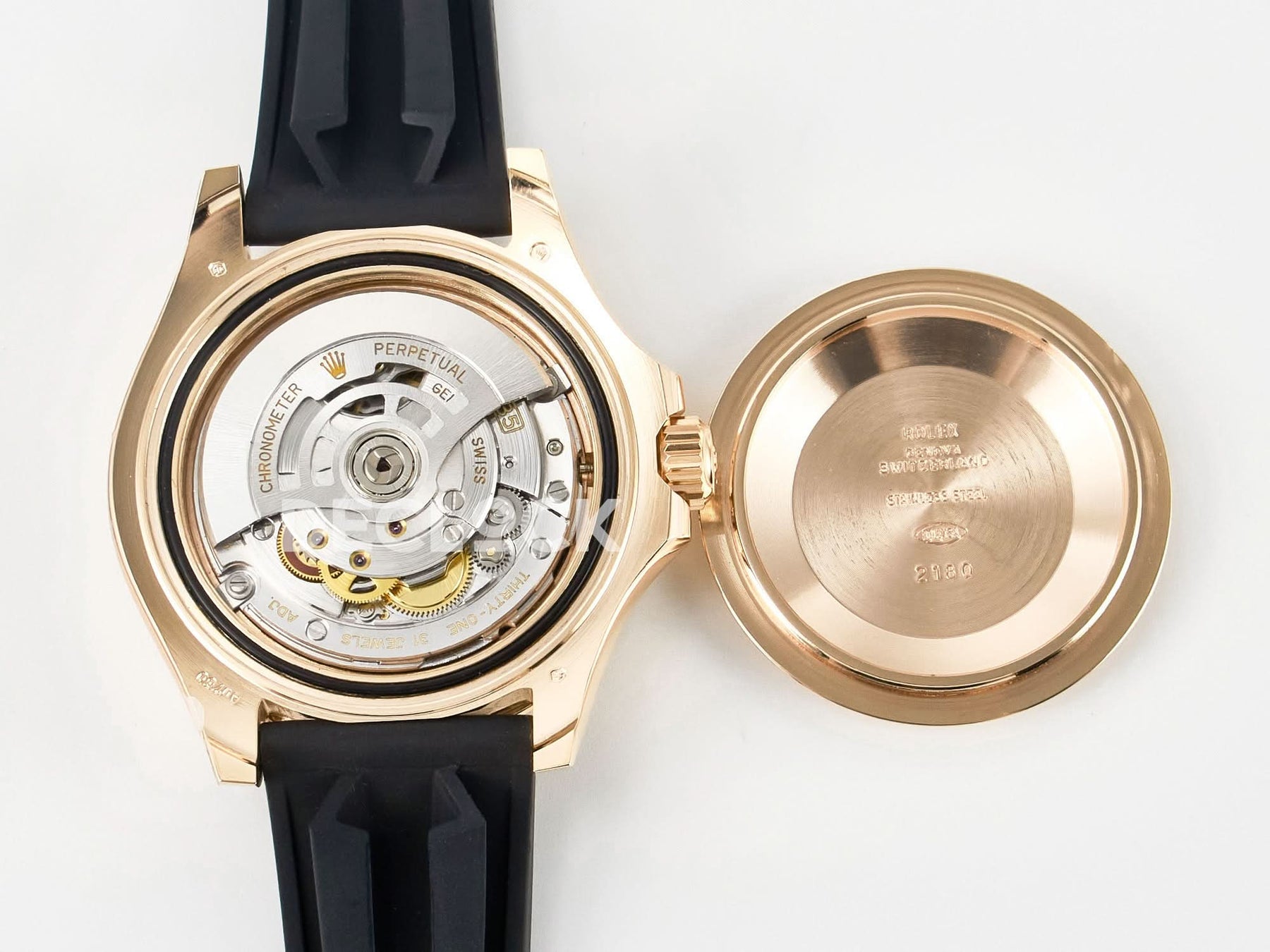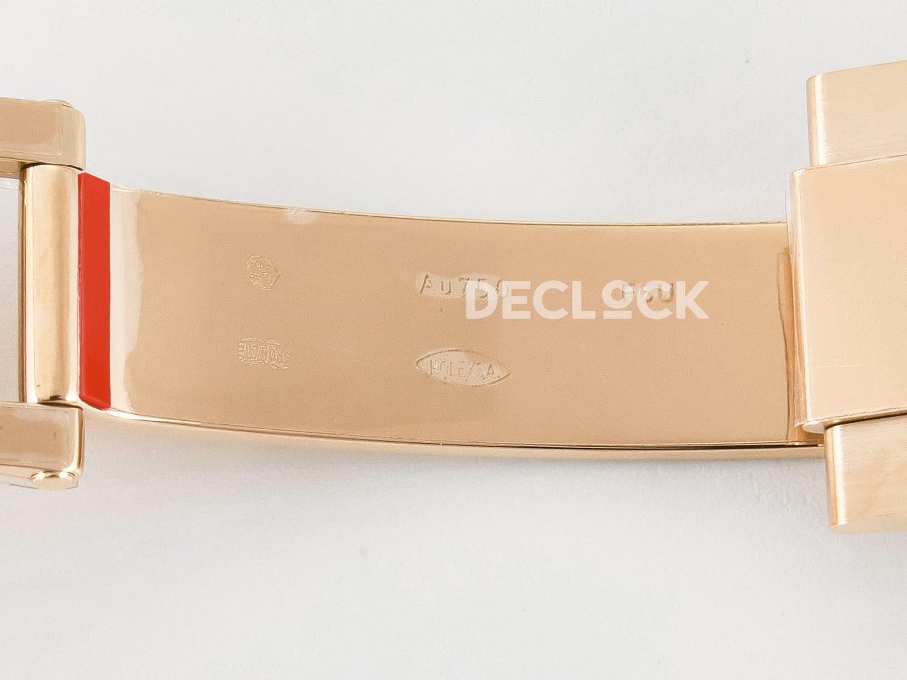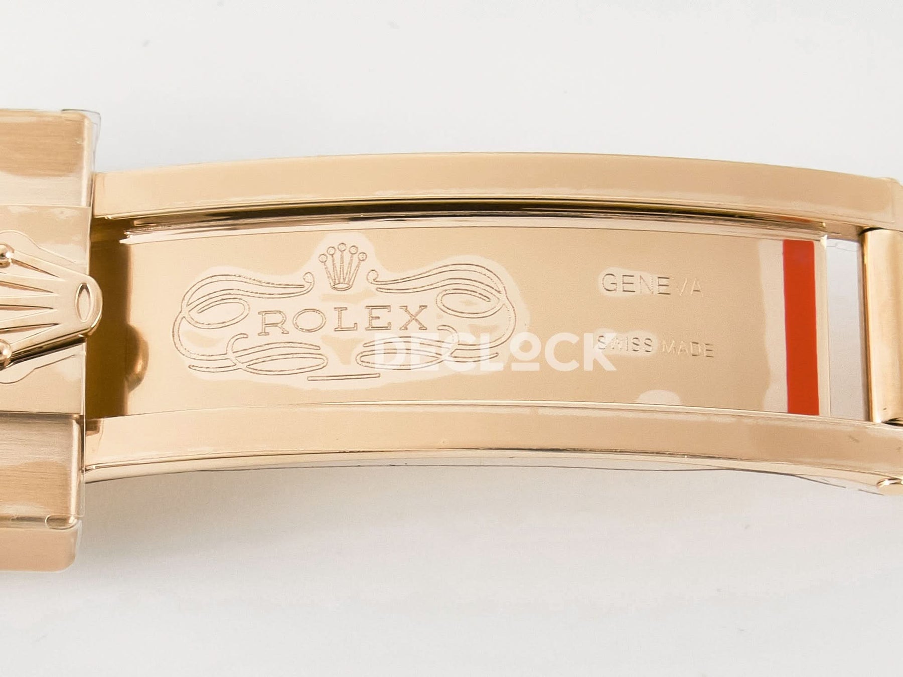 Κάσα 18k Rose Gold σε ανοξείδωτο ατσάλι 904L, αναγραφή τυχαίου σειριακού αριθμού και λογότυπο με laser στο σημείο 6:00