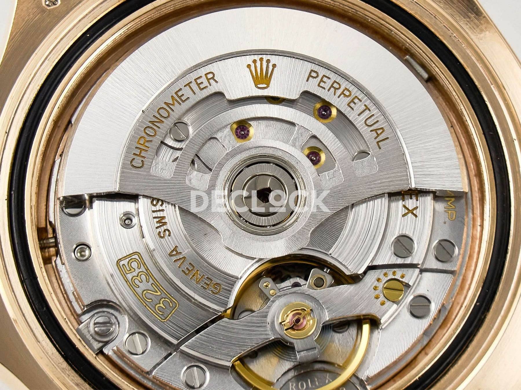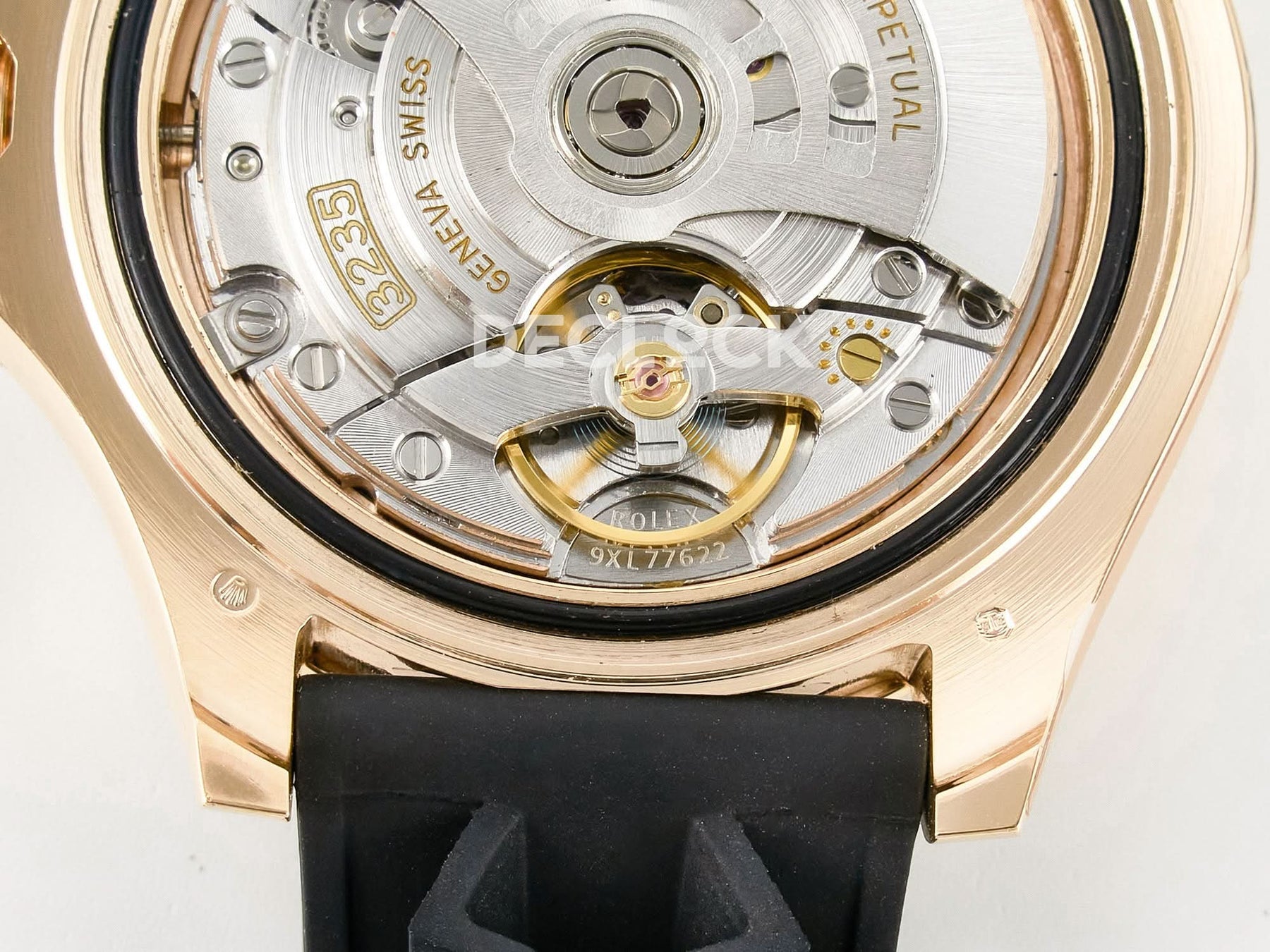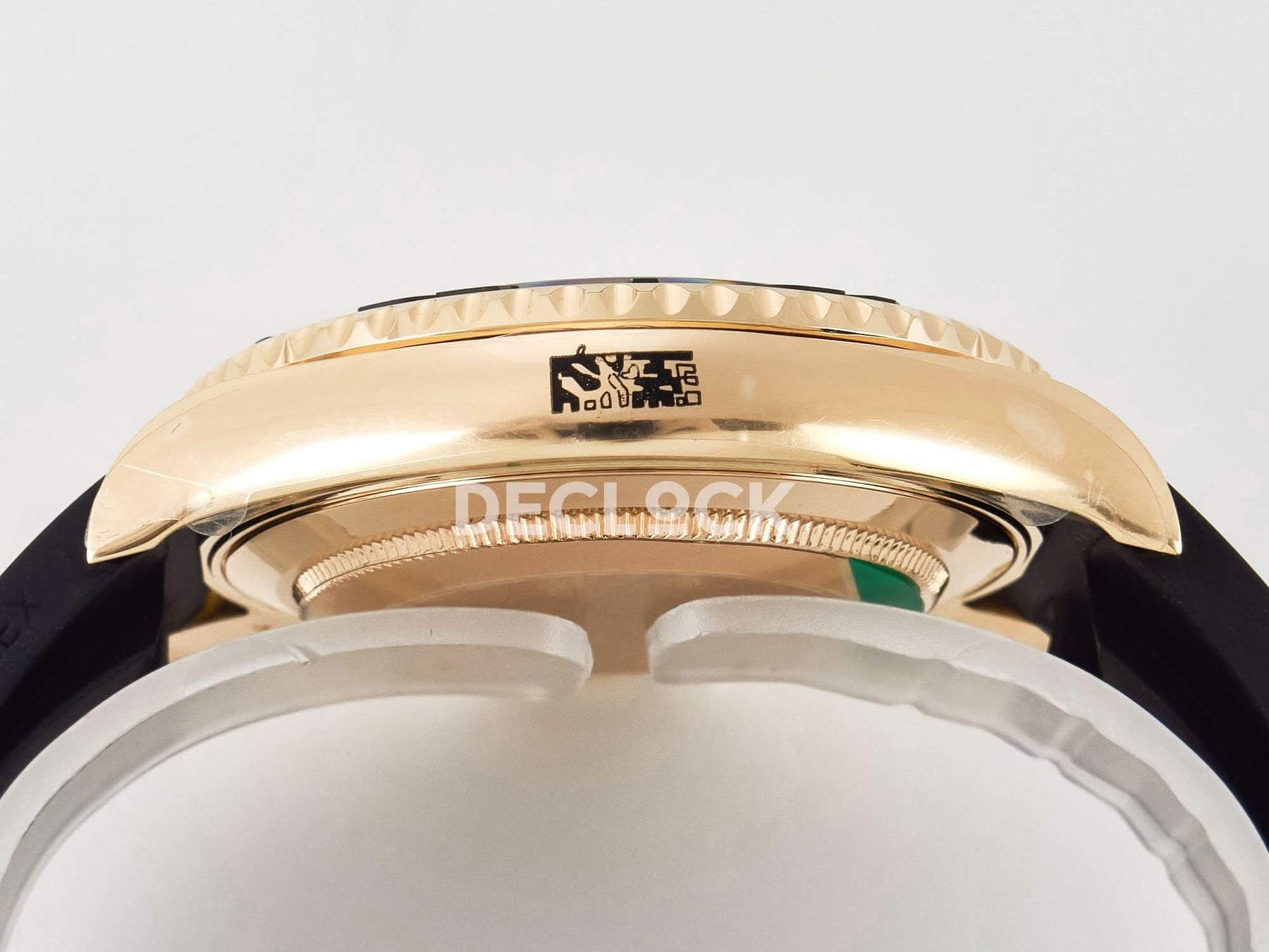 Κάσα 18k Rose Gold σε ανοξείδωτο ατσάλι 904L, αναγραφή τυχαίου σειριακού αριθμού και λογότυπο με laser στο σημείο 6:00