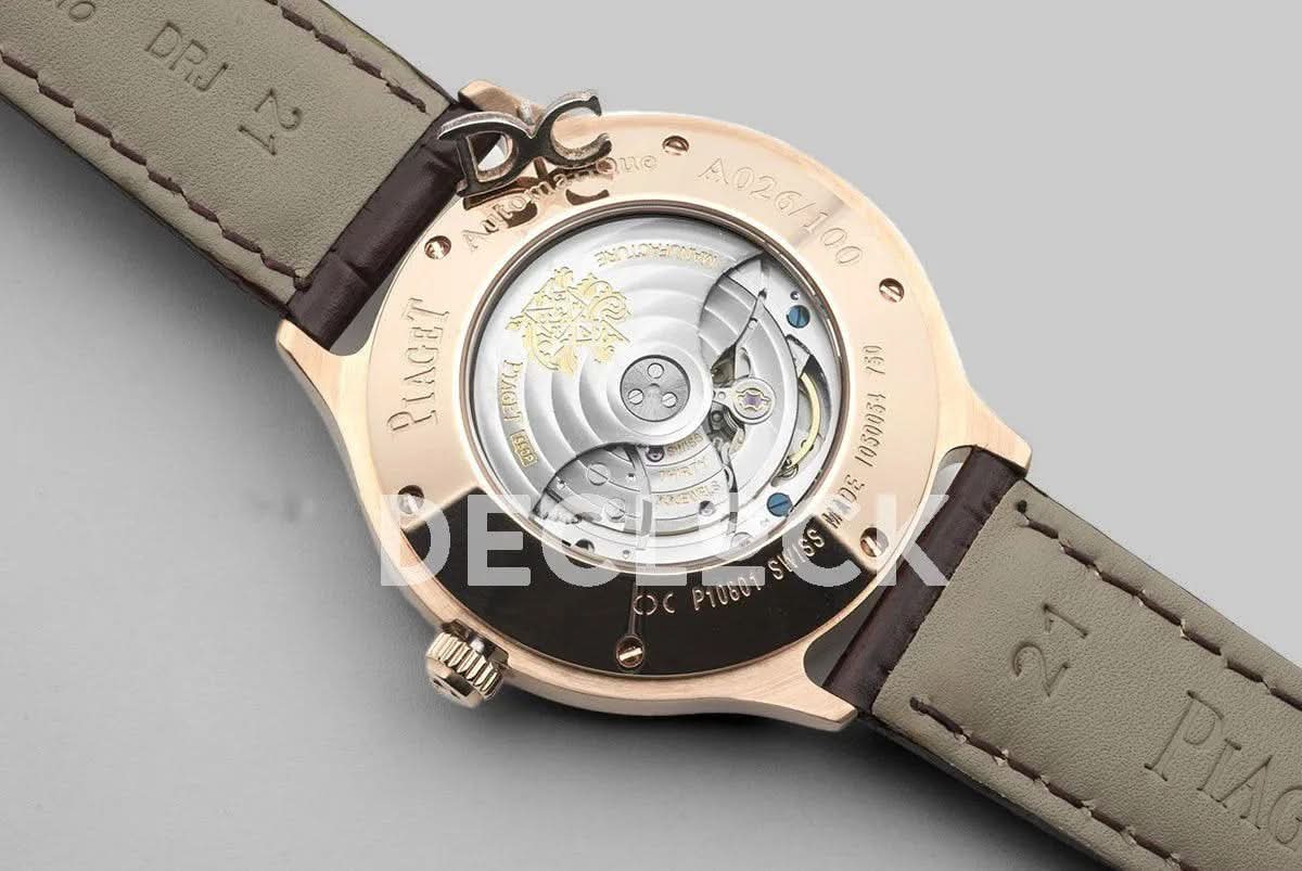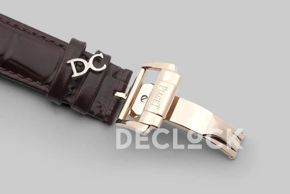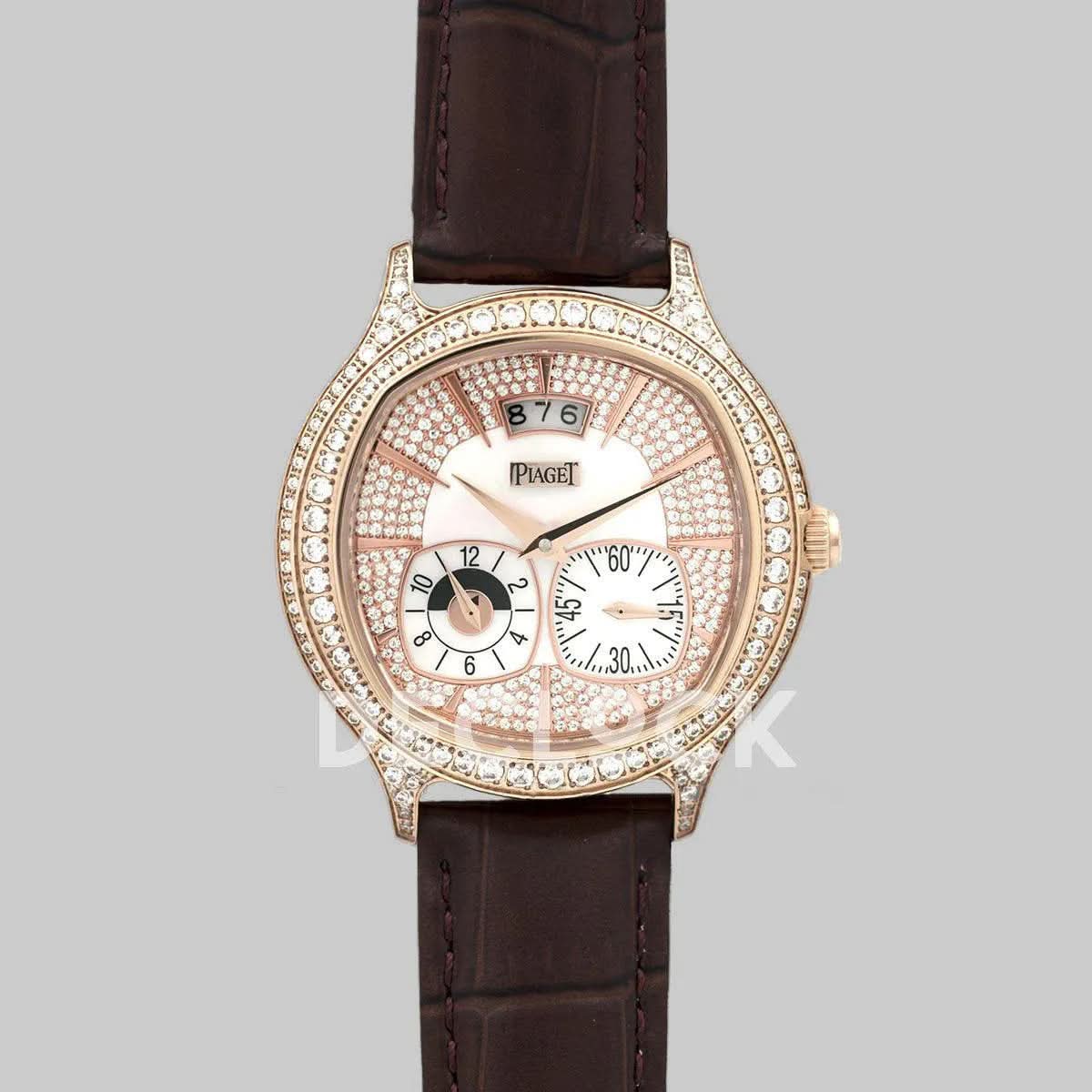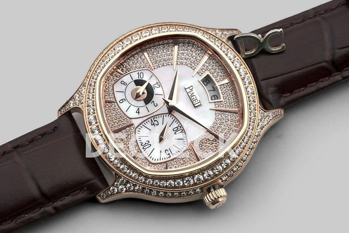 Replica Piaget Black Tie Emperador Cushion White Dial in Rose Gold with Diamond Bezel and Dial