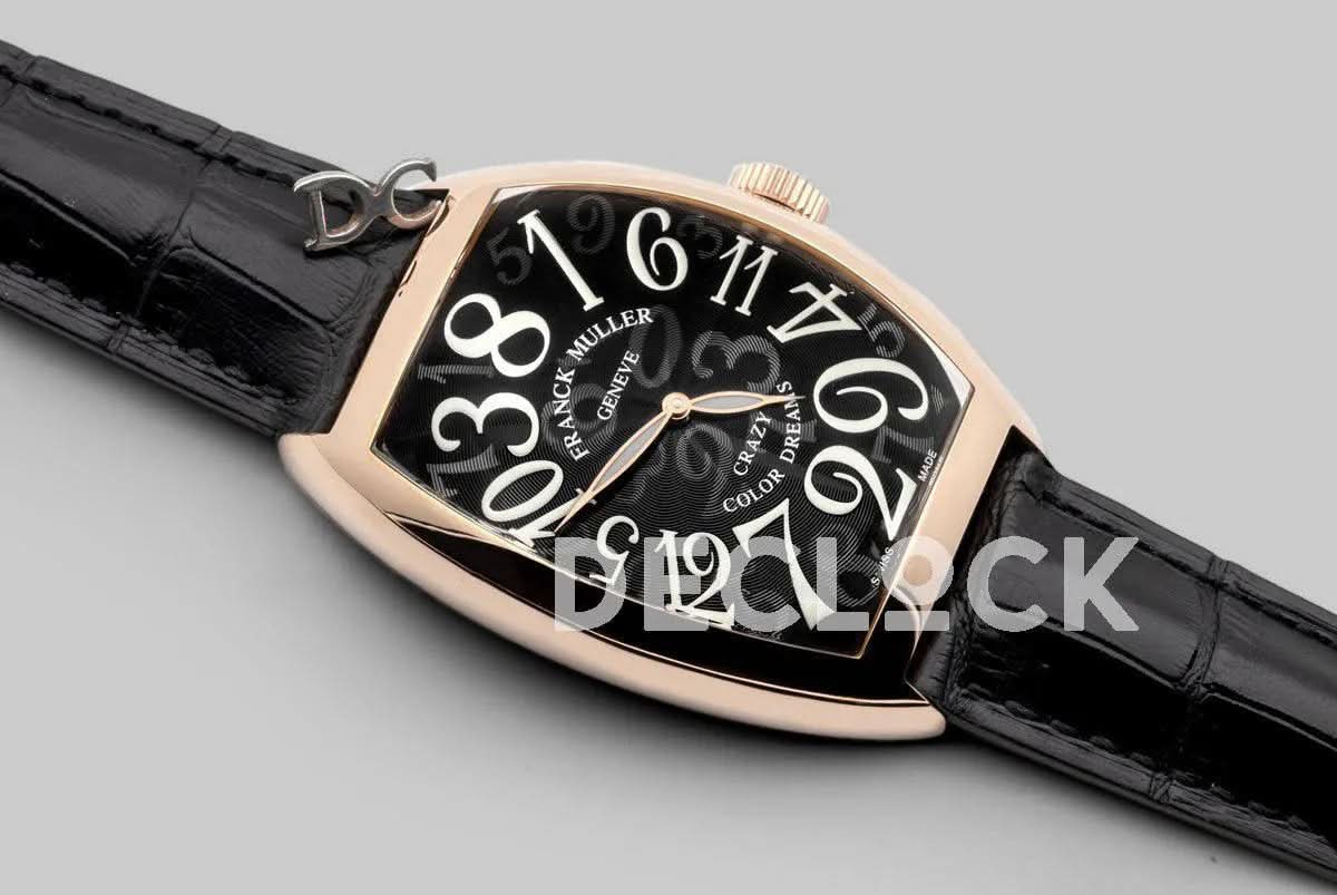 Replica Franck Muller Crazy Hours Black Dial with White Markers in Rose Gold