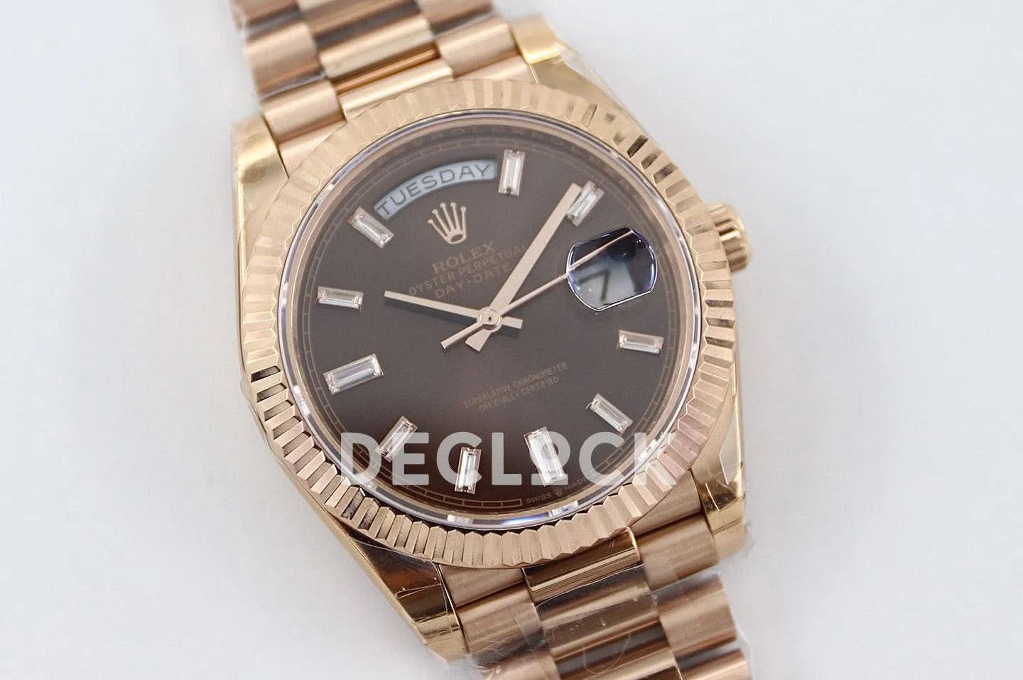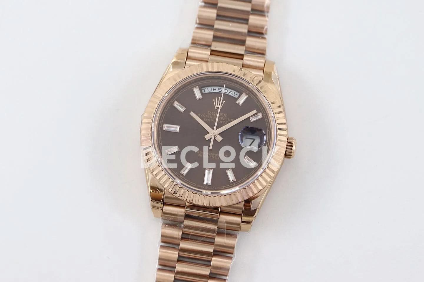 Replica Rolex Day-Date 40 228235 Chocolate Dial in Everose Gold