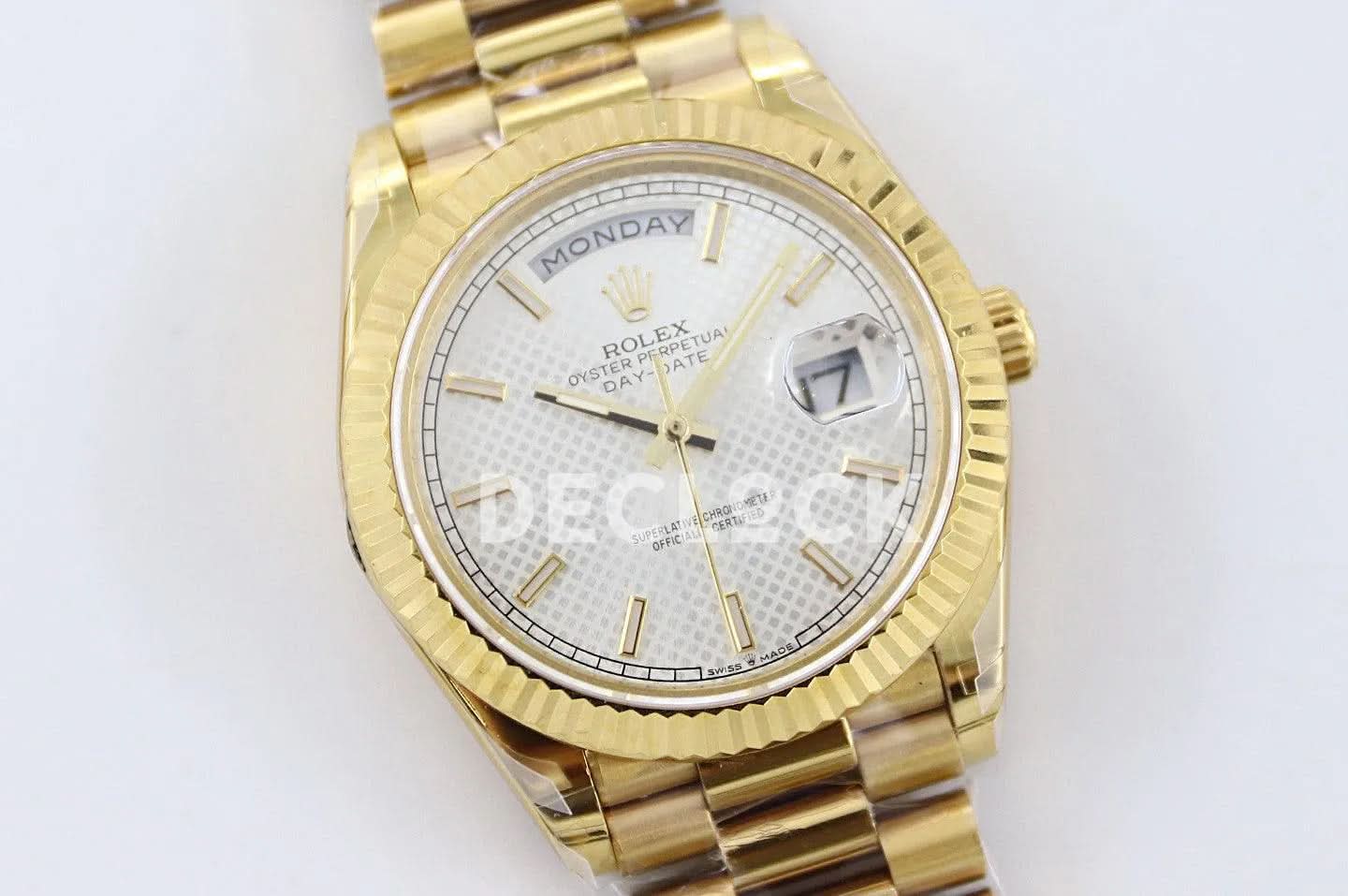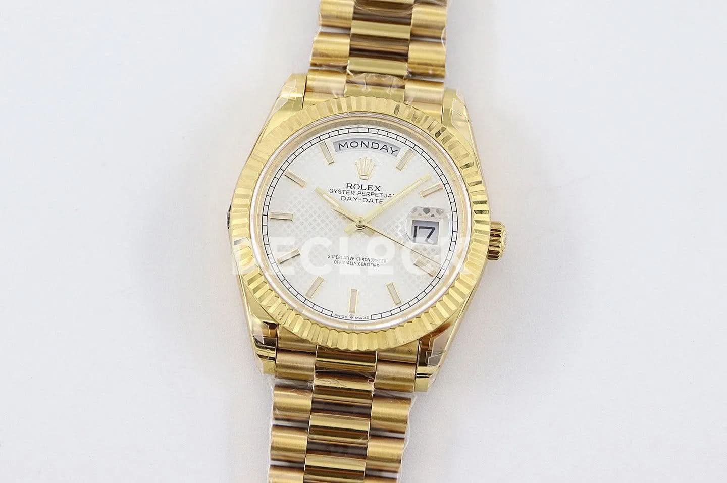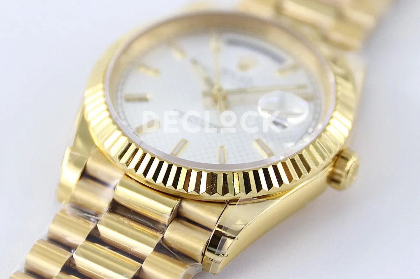 Replica Rolex Day-Date 40 228238 White Dial in Yellow Gold Diagonal Motif
