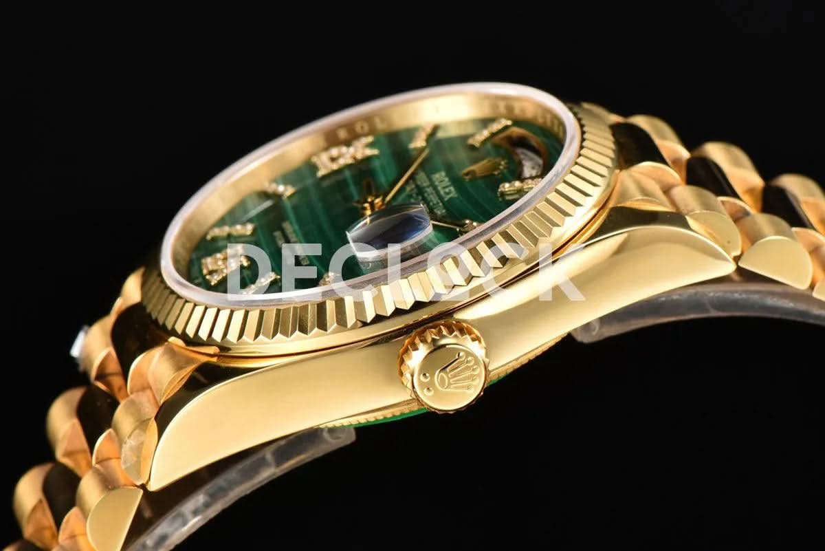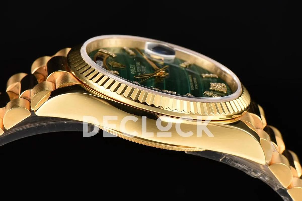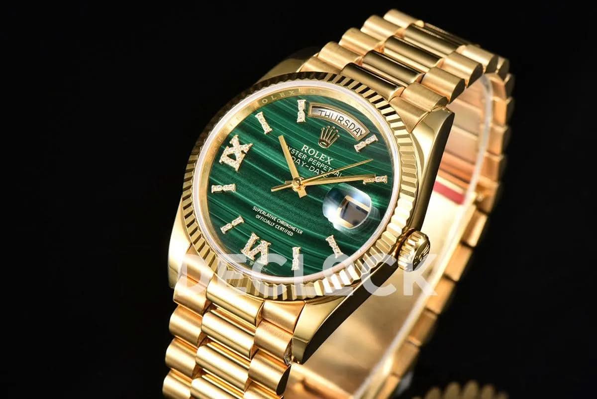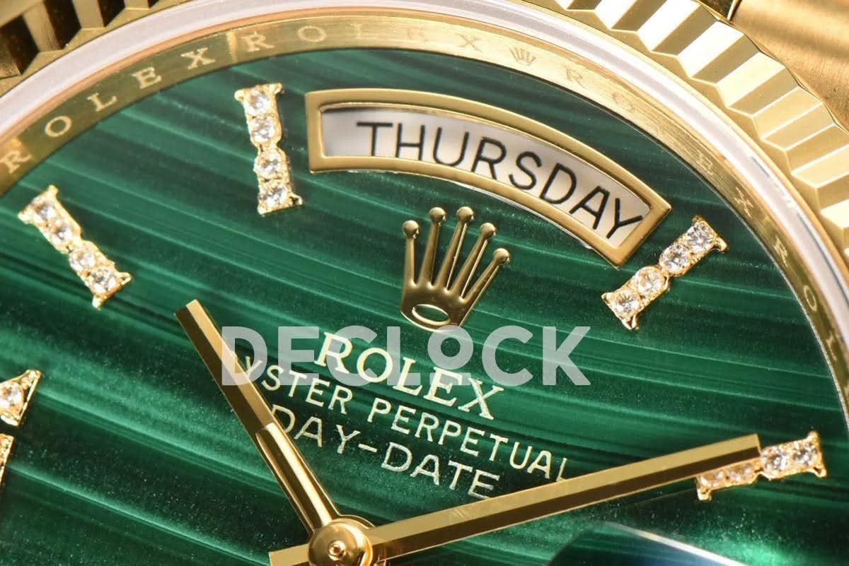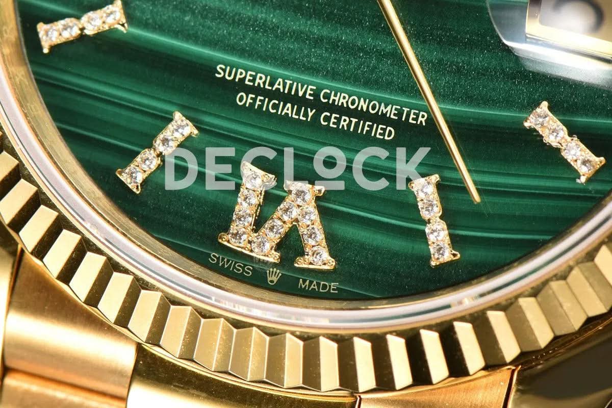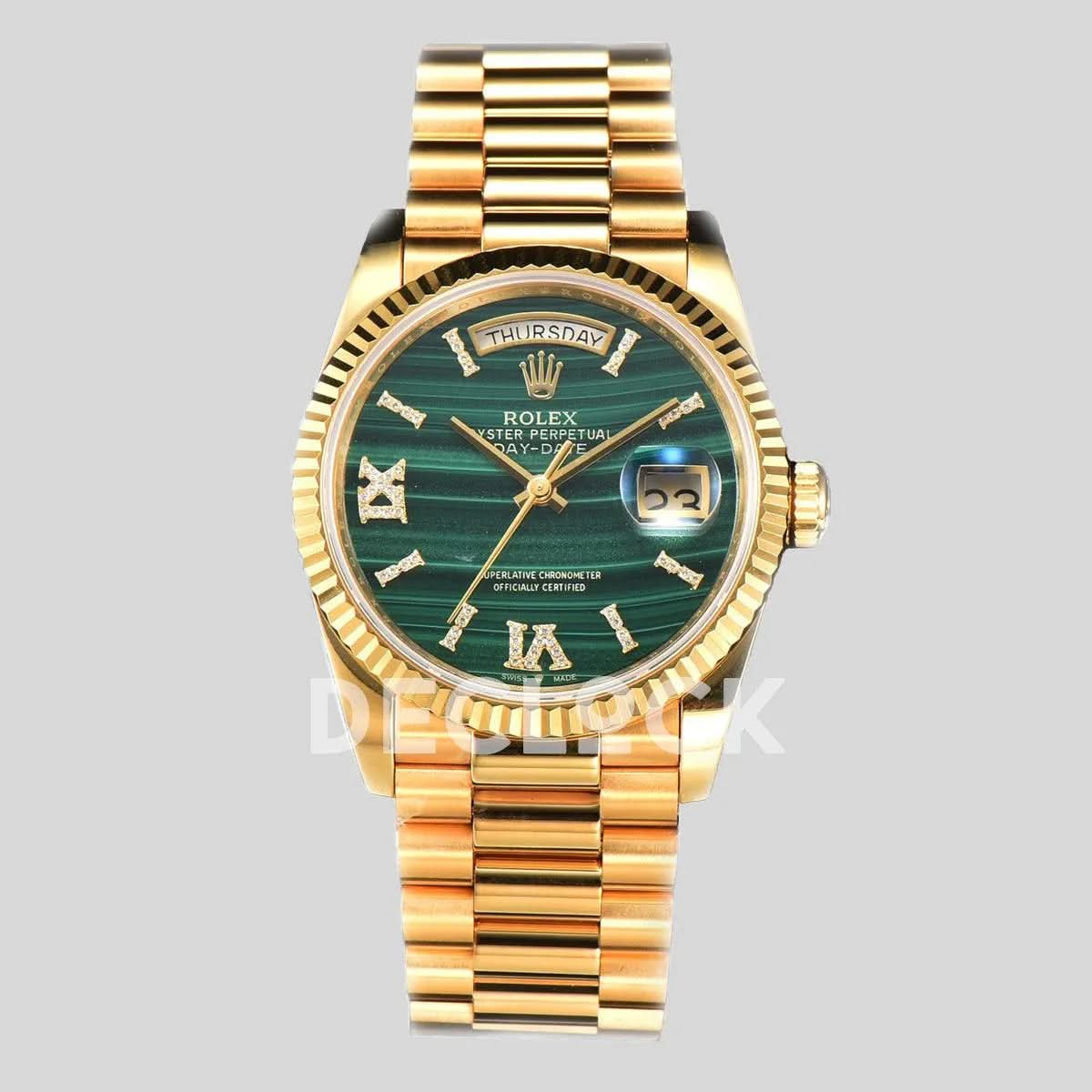 Replica Rolex Day-Date 36 128238 Malachite Diamond Roman Dial in Yellow Gold