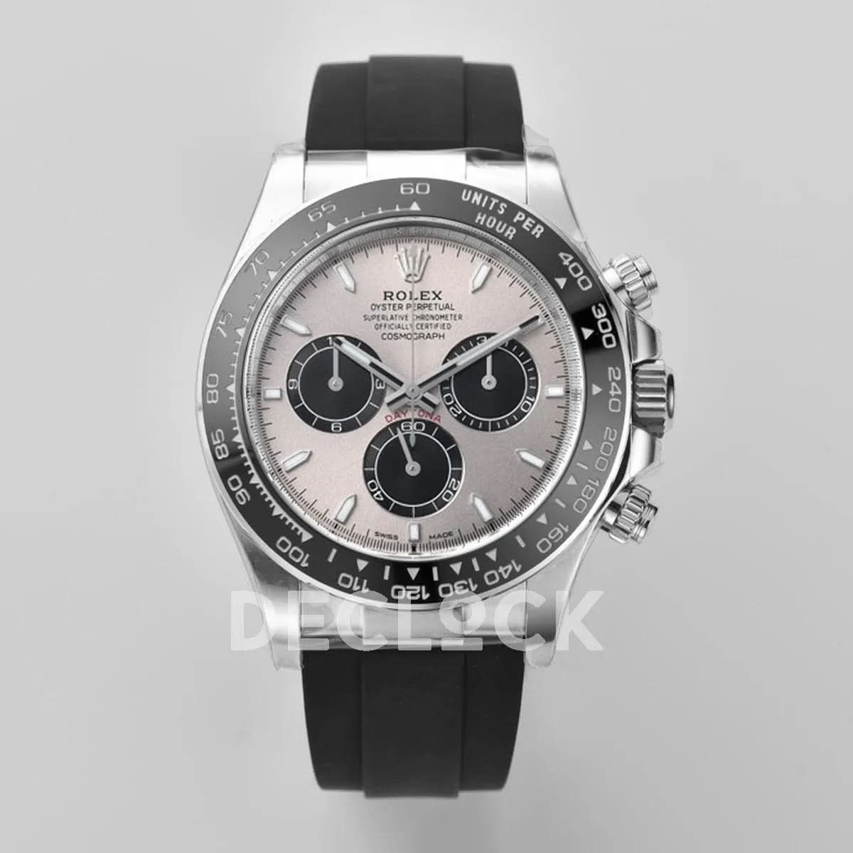 Replica Rolex Daytona 126519LN Steel Dial in White Gold on Rubber Strap