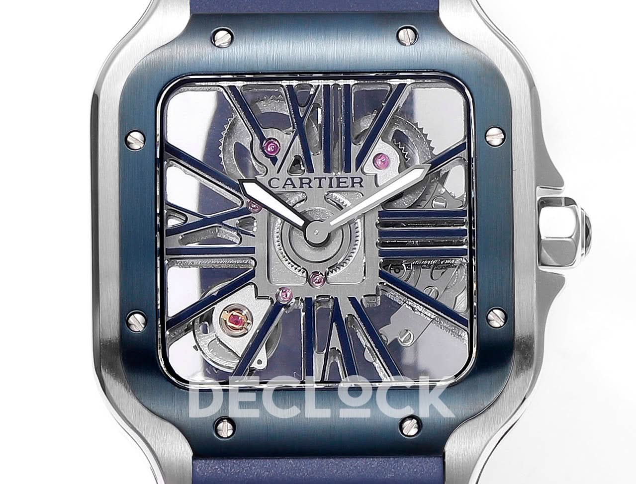 Santos de Cartier Skeleton SS Blue Strap Blue Bezel