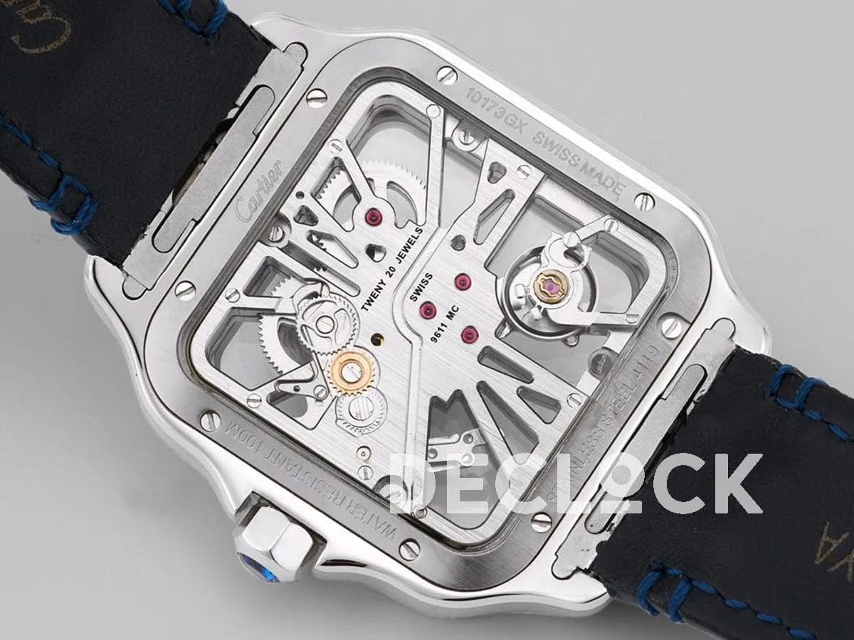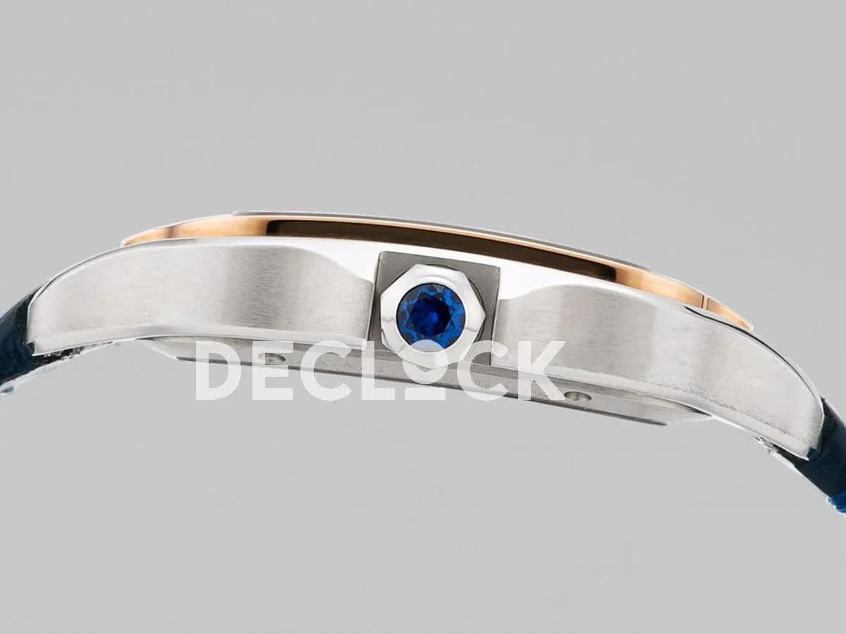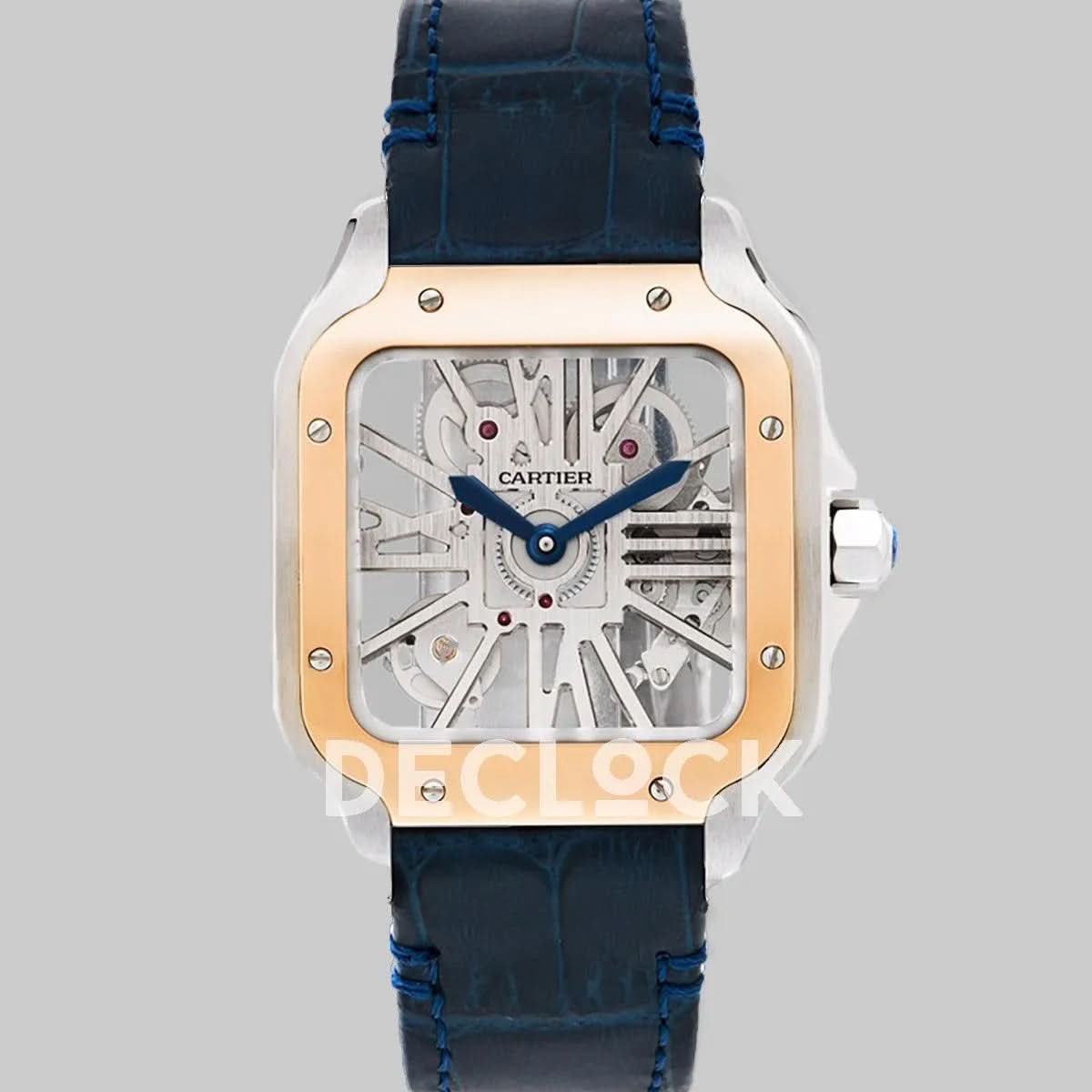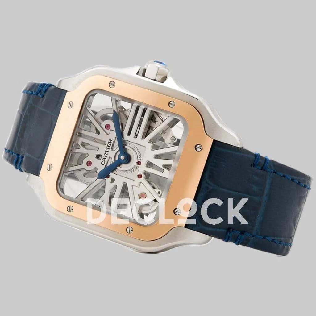 Replica Cartier Santos De Cartier Watch Skeleton Dial in Steel/Rose Gold on Leather Strap