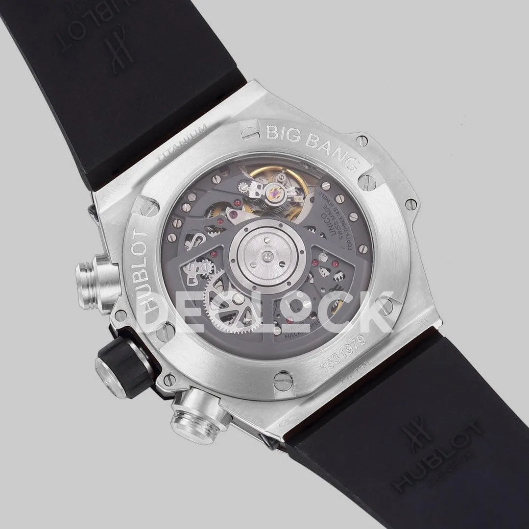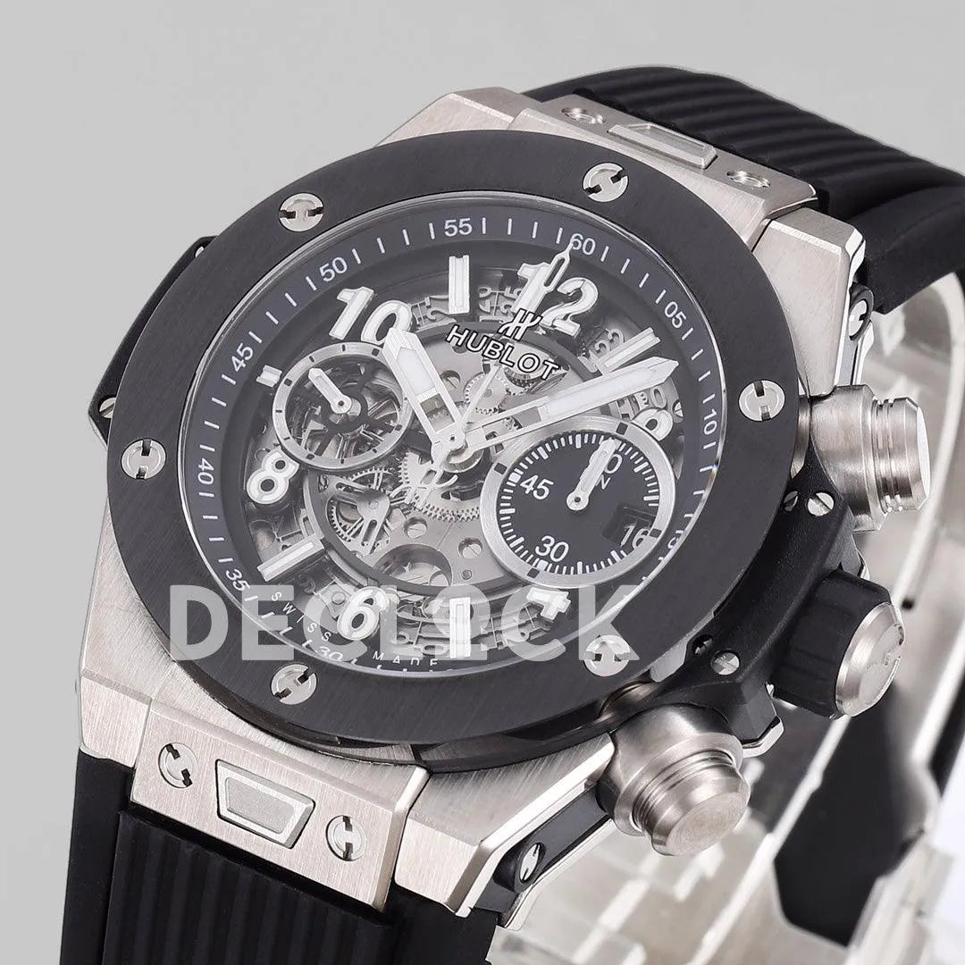 Replica Hublot Big Bang Unico Steel Black Ceramic Bezel on Black Rubber Strap