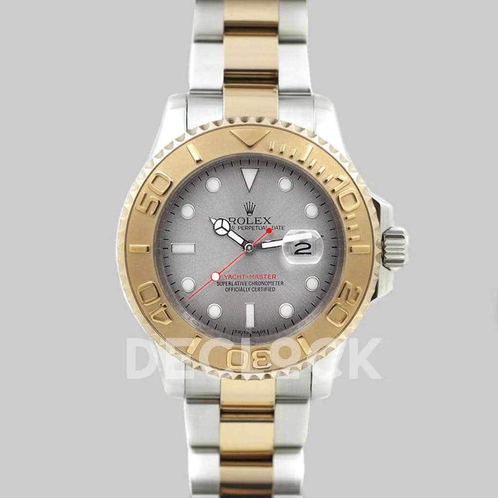 Ποιοτική αντιγραφή του τελευταίου μοντέλου Rolex Yacht-Master 116622 σε white gold κάσα και μπρασελέ και yellow gold bezel.