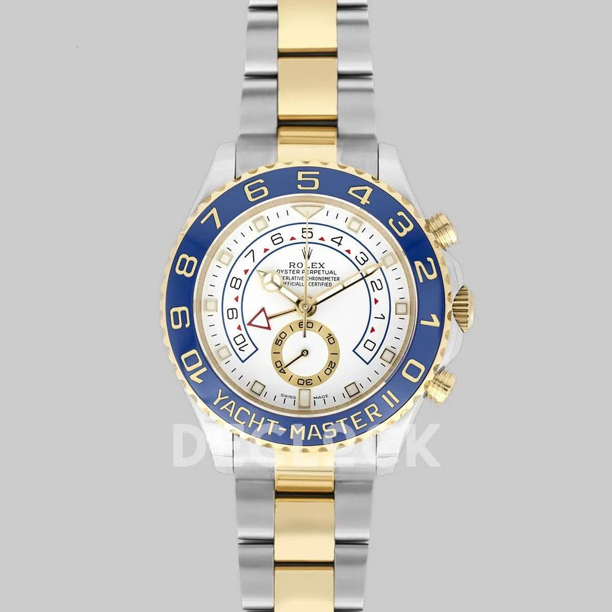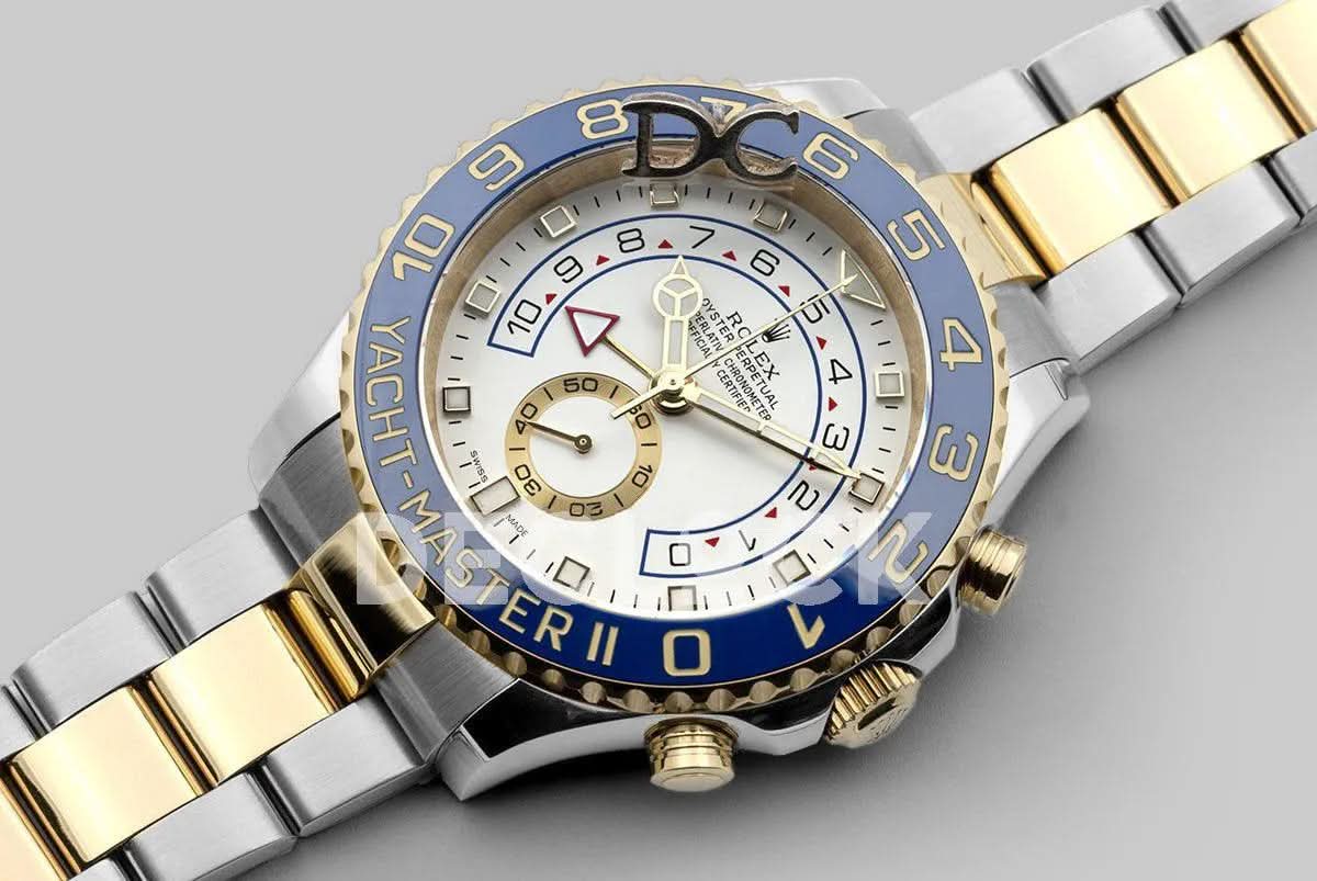 Ποιοτική αντιγραφή του τελευταίου μοντέλου Yacht-Master II 116688 σε Yellow Gold κάσα και μπρασελέ και μπλε bezel.