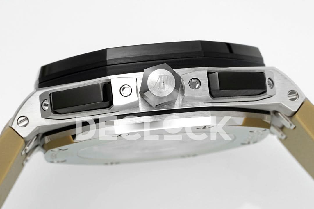 Κουμπί | Κεραμικά και πτυσσόμενο με λογότυπο AP, με λειτουργικό περιστρεφόμενο εσωτερικό ταχύμετρο και λειτουργικό χρονογράφο |