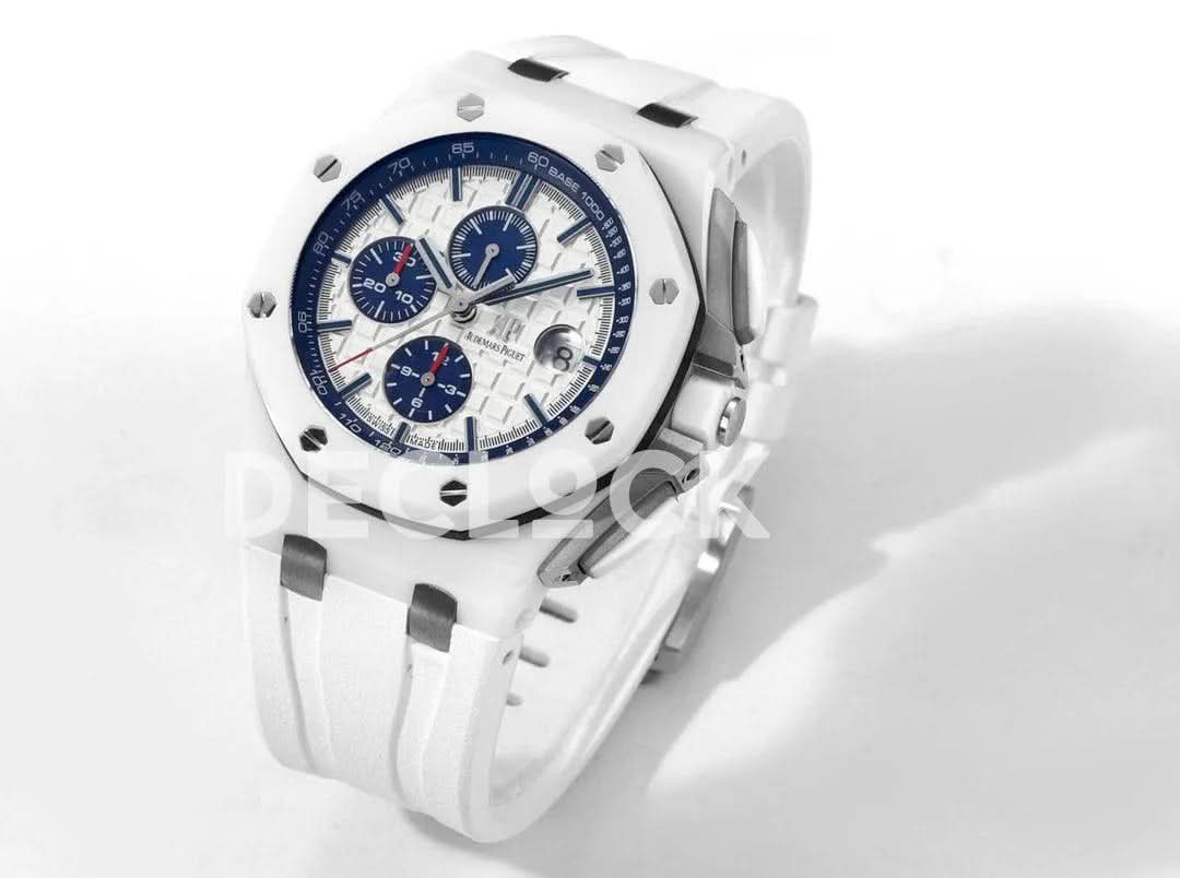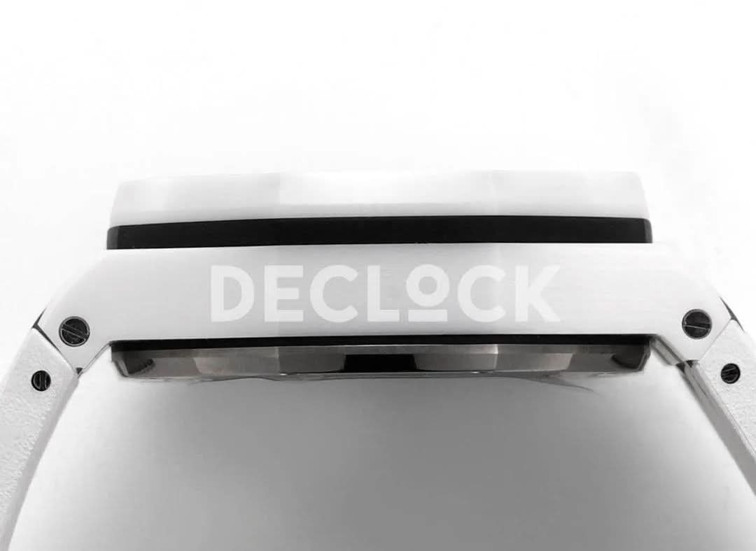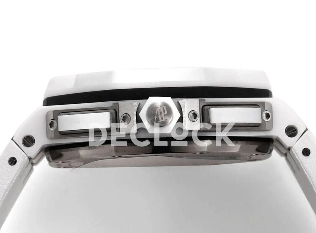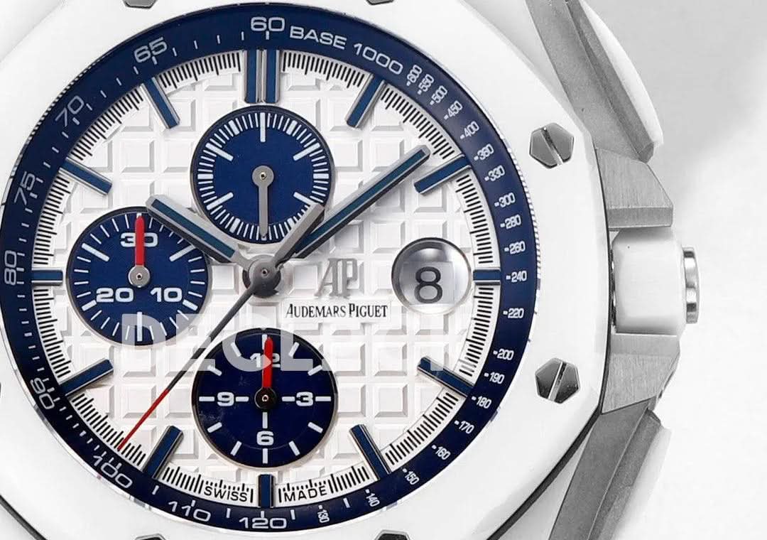 Κάσα | Ανοξείδωτο ατσάλι 316F, με διπλό κύκλωπα μεγέθυνσης (x2.50) AP στο 3.00, επιπλατινωμένη πλάκα κίνησης (open back) και ρότορας που κατασκευάζονται σύμφωνα με την αυθεντική κίνηση, τον πιο όμορφο AP Cliber 3126 |