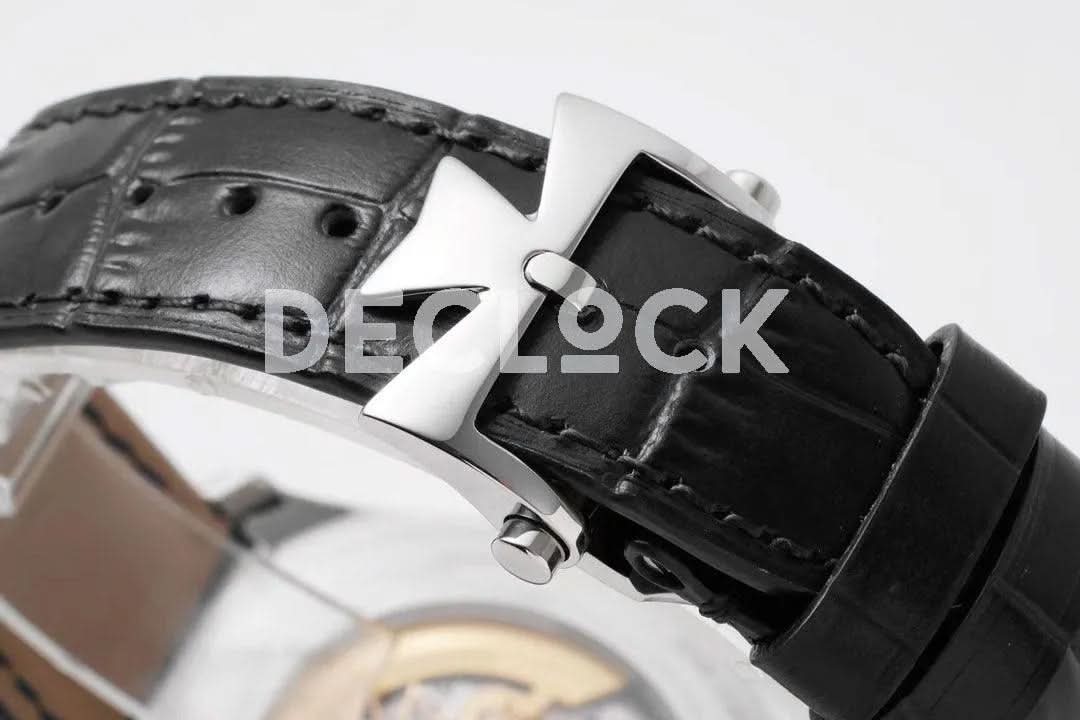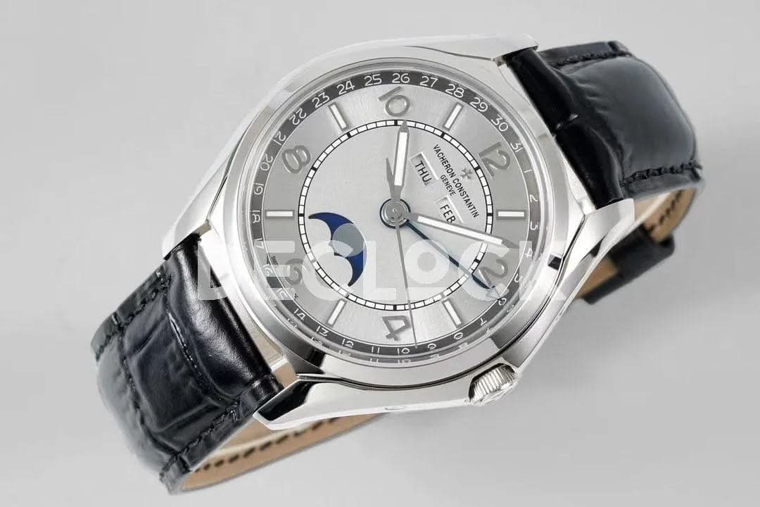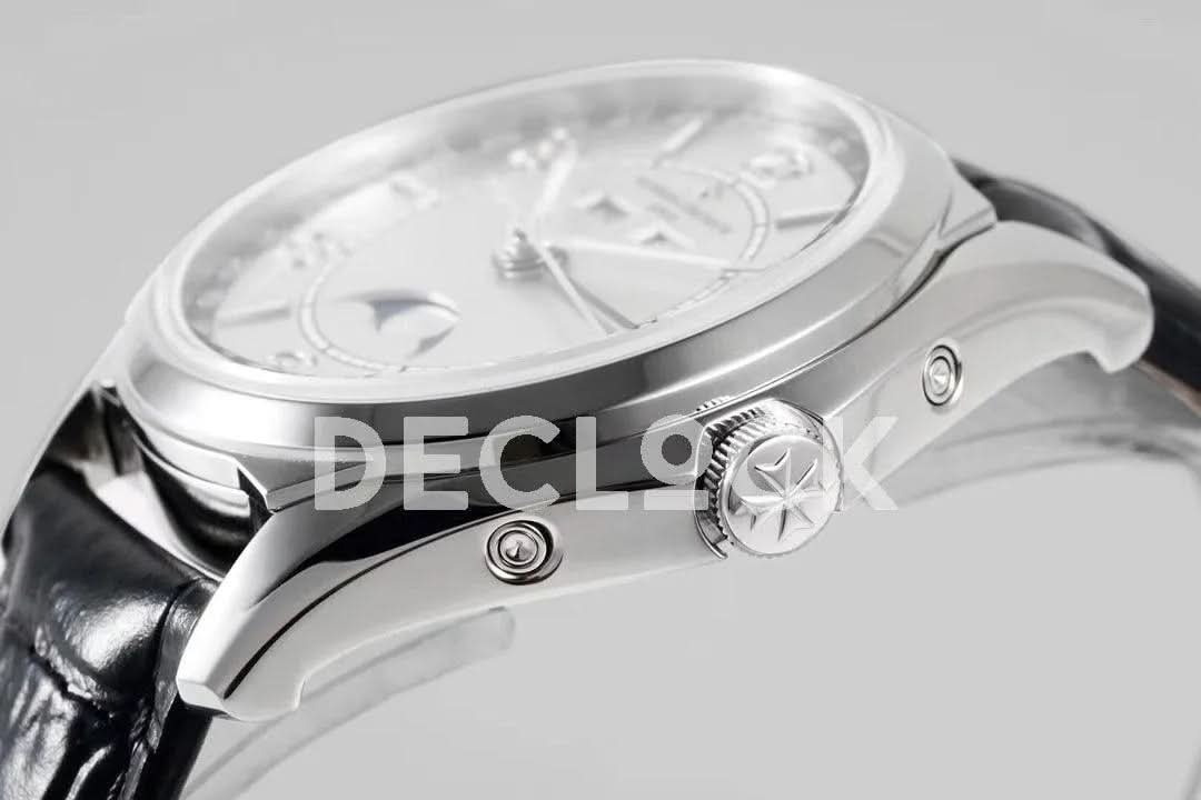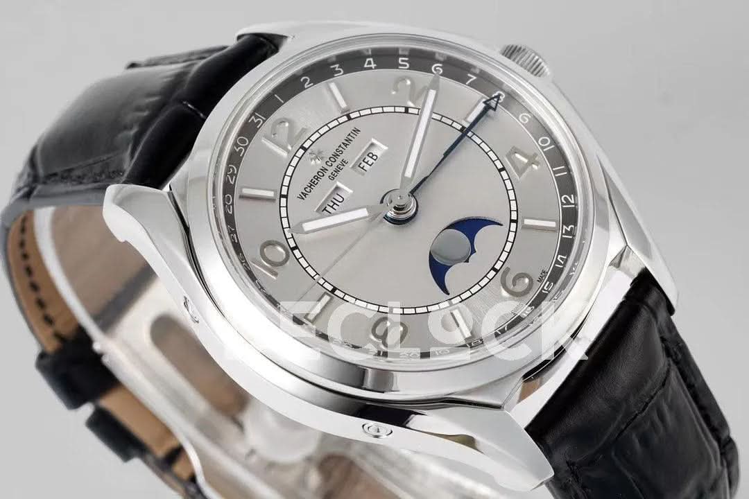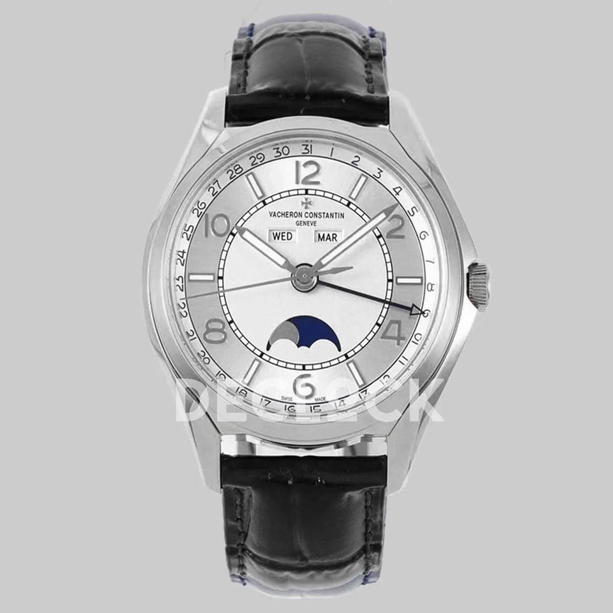 Replica Vacheron Constantin Fiftysix Complete Calendar on Steel White Dial on Black Leather Strap