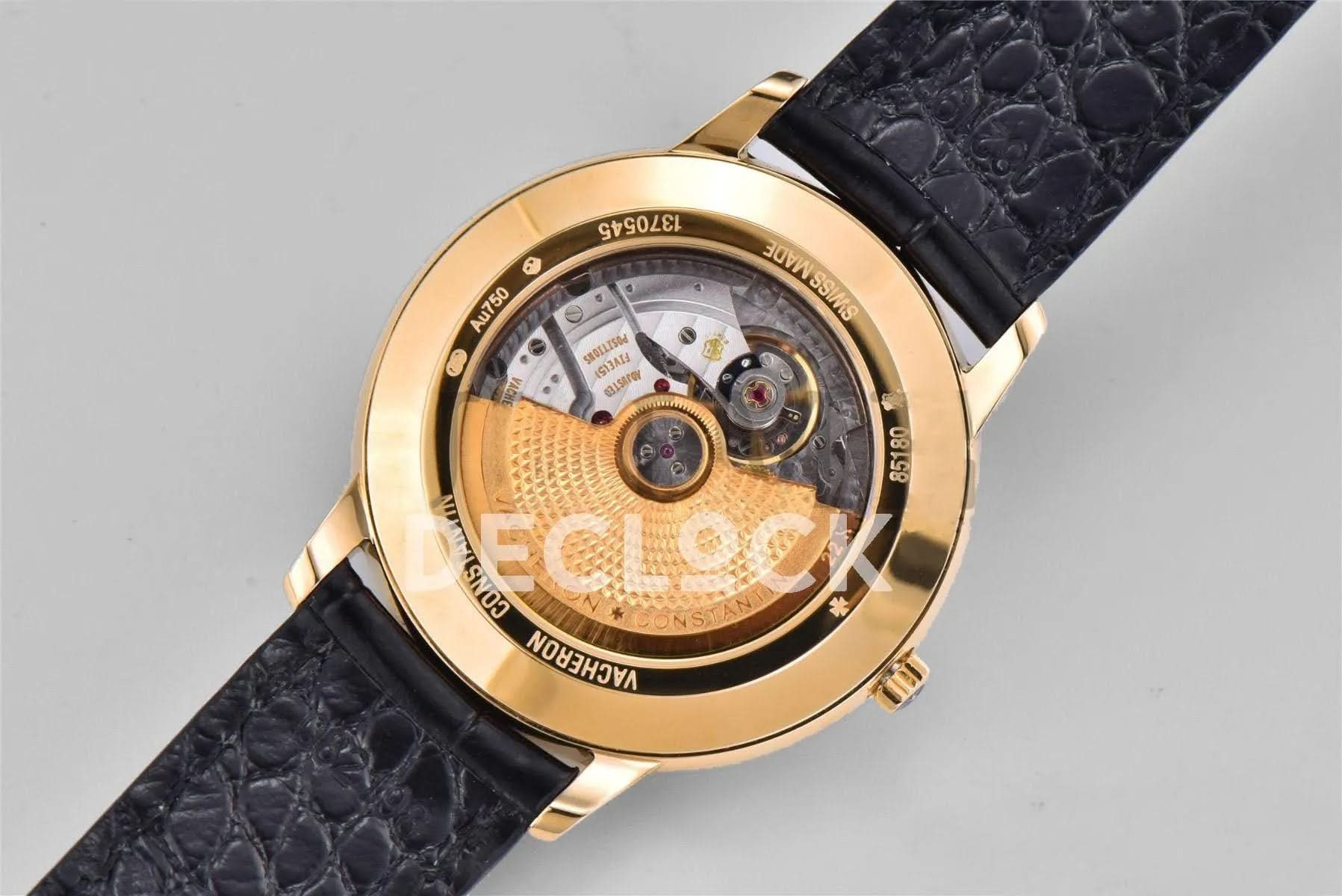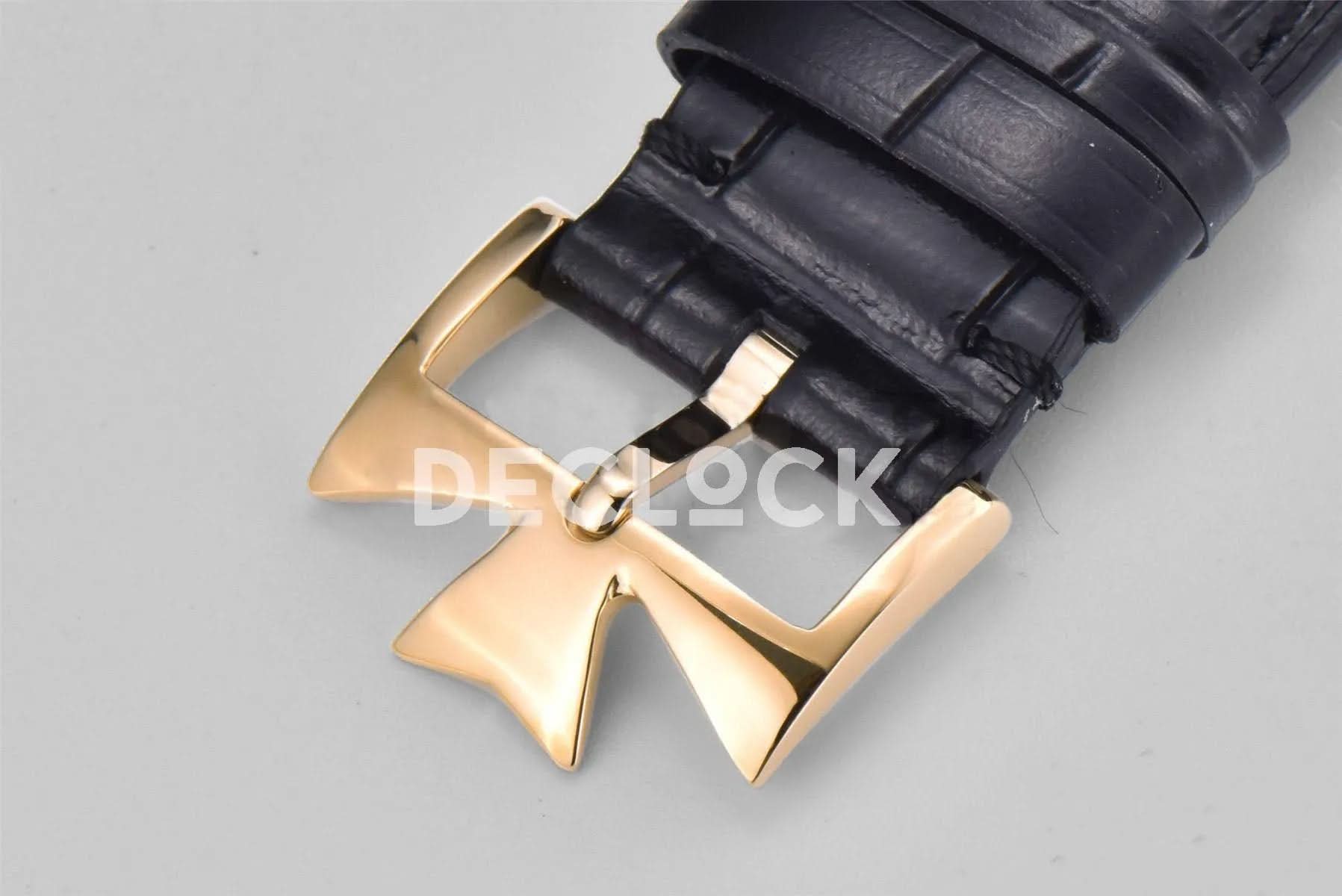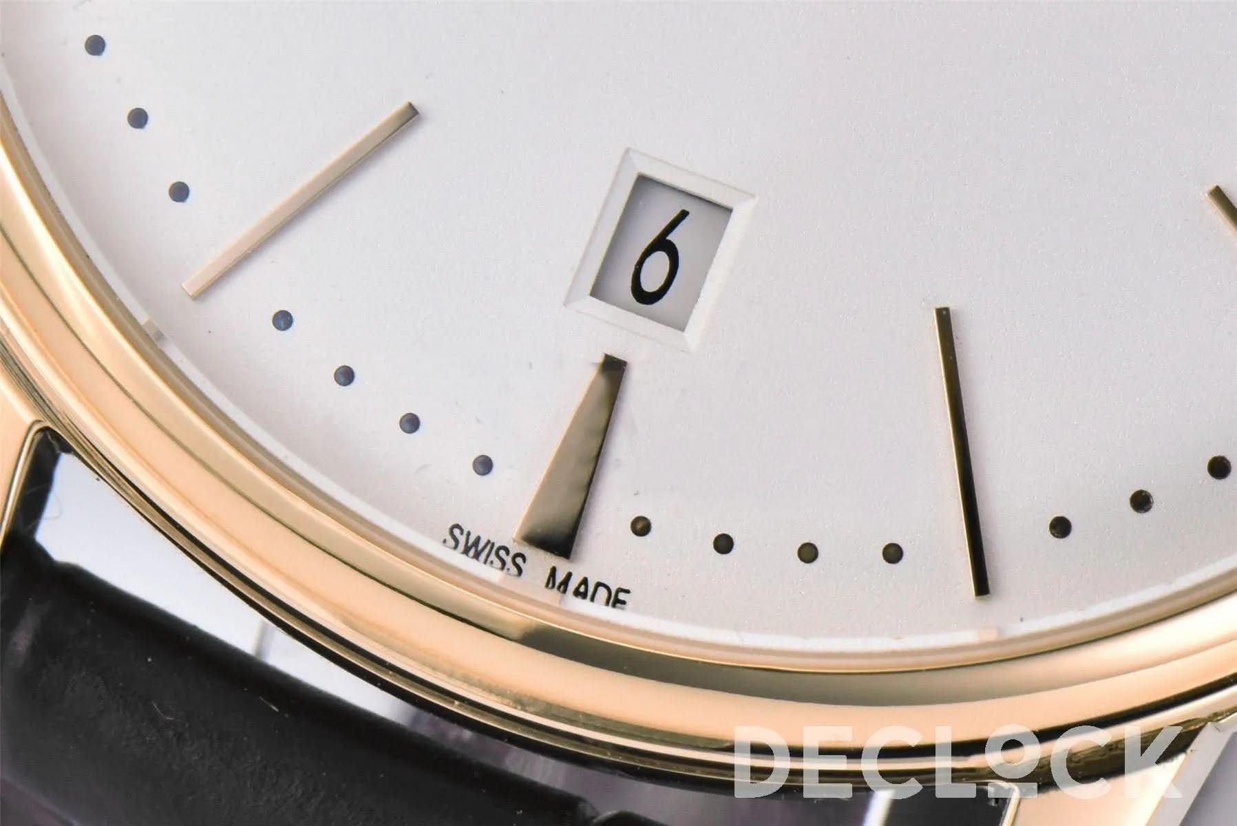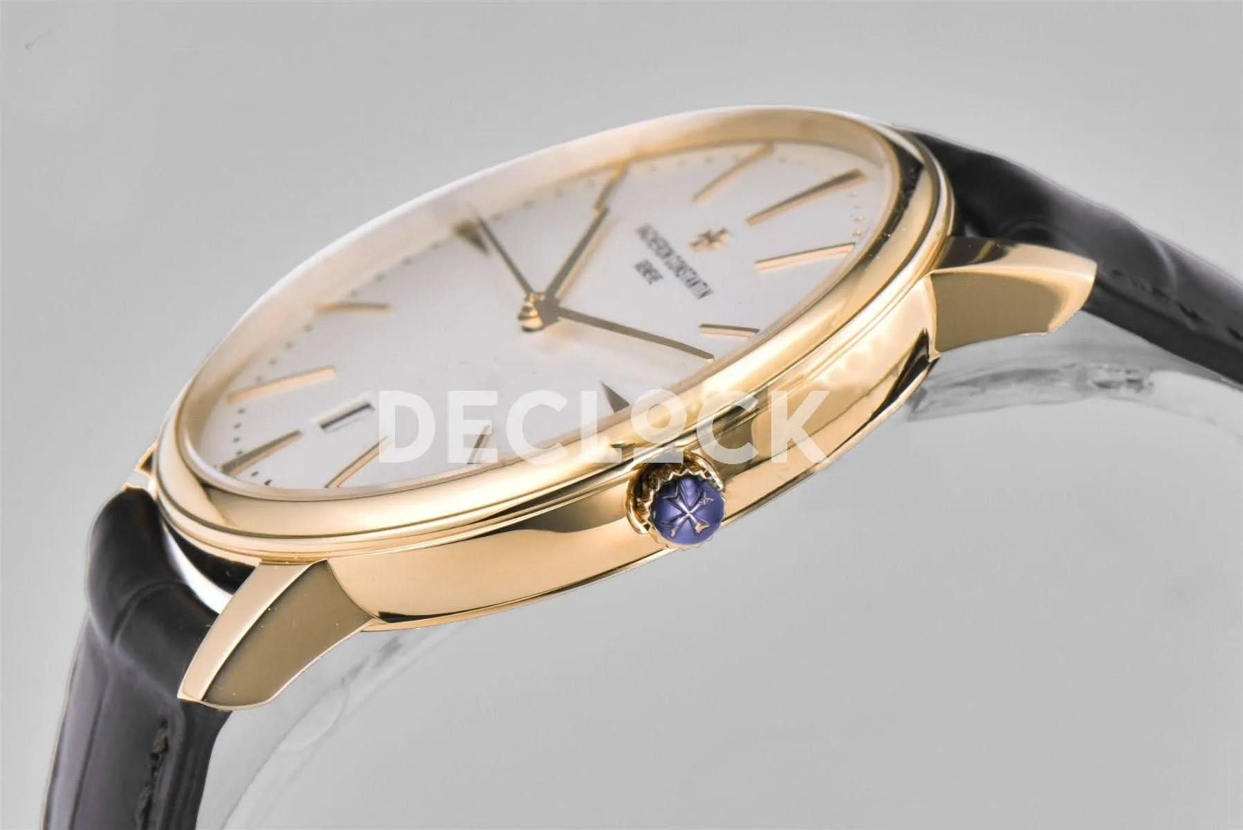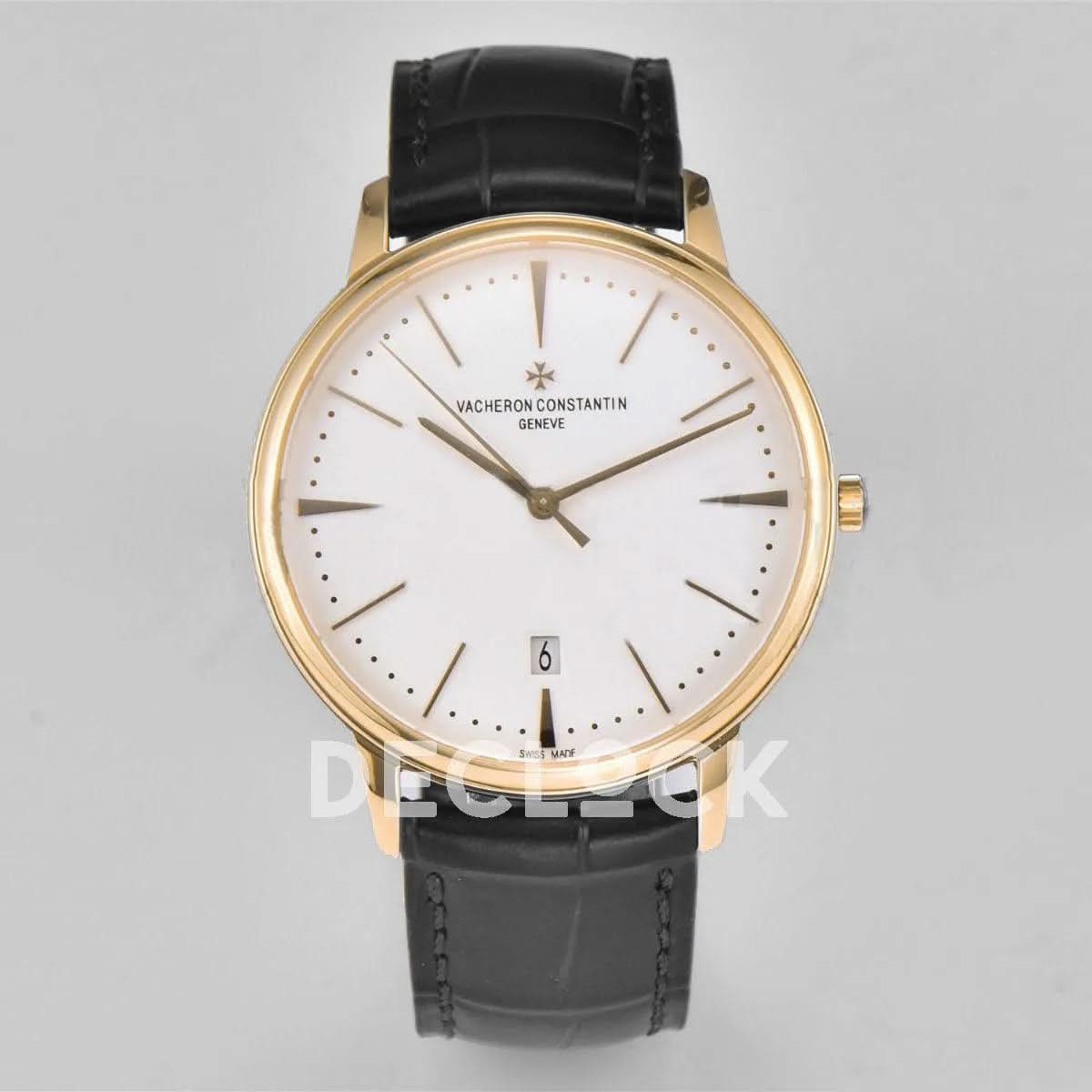 Replica Vacheron Constantin Patrimony Date Yellow Gold White Dial on Black Leather Strap