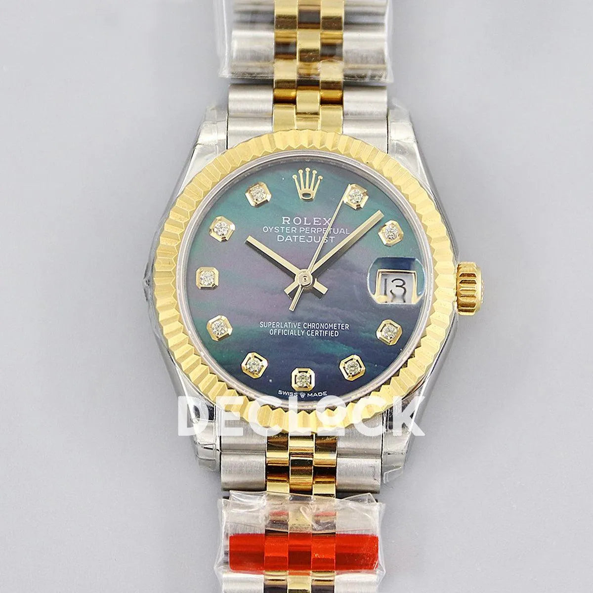 Replica Rolex Datejust 31 278273 Blue Dial in Yellow Gold with Diamon Markers