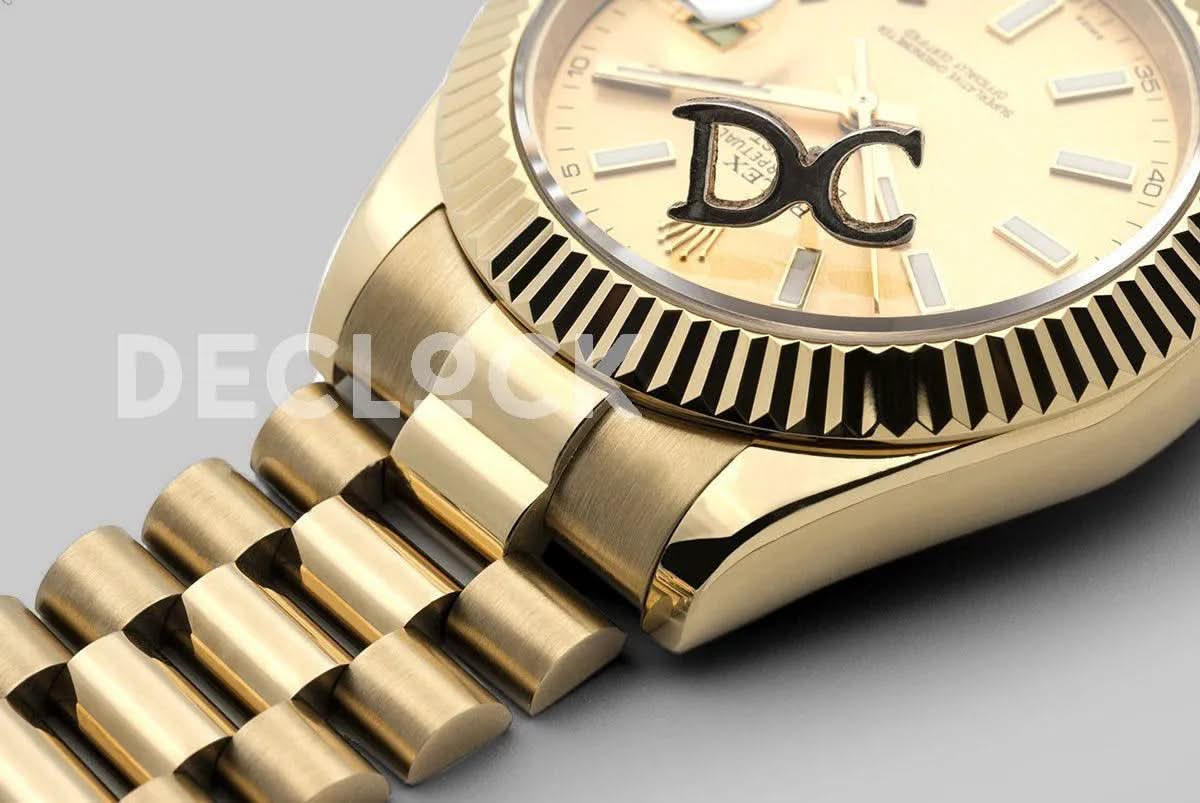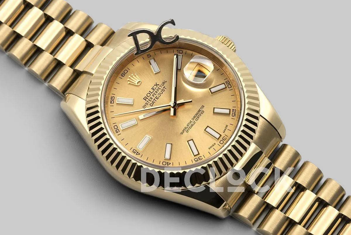 Μια από τις κορυφαίες αντιγραφές, ακριβής αναπαραγωγή του Datejust II 126333 με Champagne καντράν και Stick Markers σε President μπρασελέ.