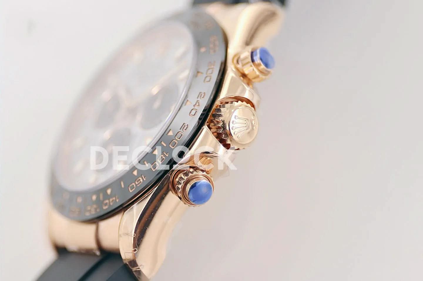Κρύσταλλο | Τζάμι από κρύσταλλο ζαφειριού, αντιχαρακτικό με ημι-αόρατο στέμμα χαραγμένο στη θέση 6:00 του κρυστάλλου (ίδιο με αυθεντικό και αυτό είναι το πρώτο του είδους του, μια επαναστατική ανακάλυψη των αντιγράφων Rolex) |