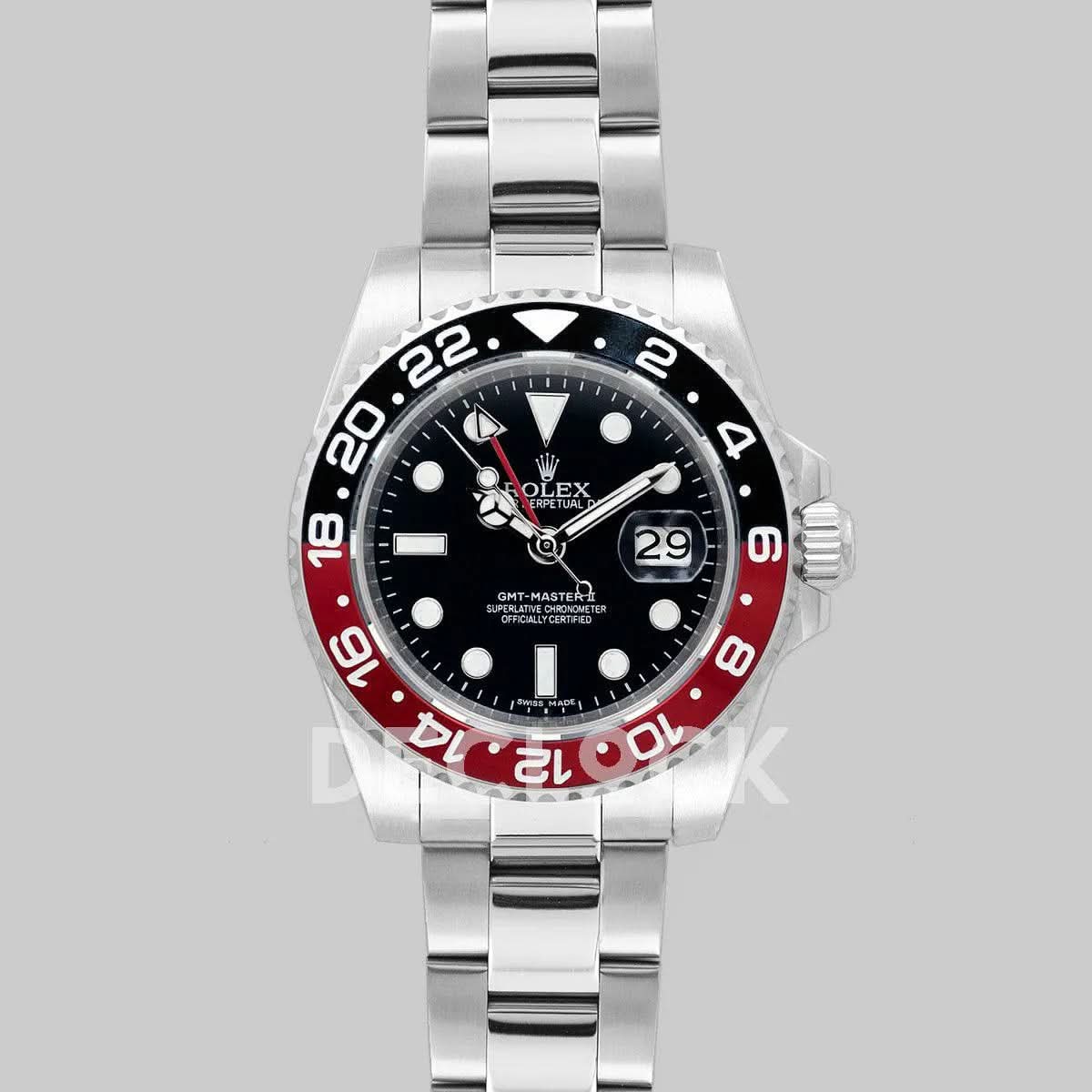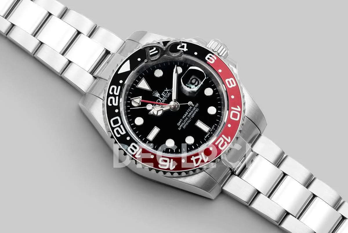 Αναπαραγωγή ποιότητας του δημοφιλούς 116710 Rolex GMT Master II σε ατσάλινη κάσα, με το Black/ Red Bezel "Coke".