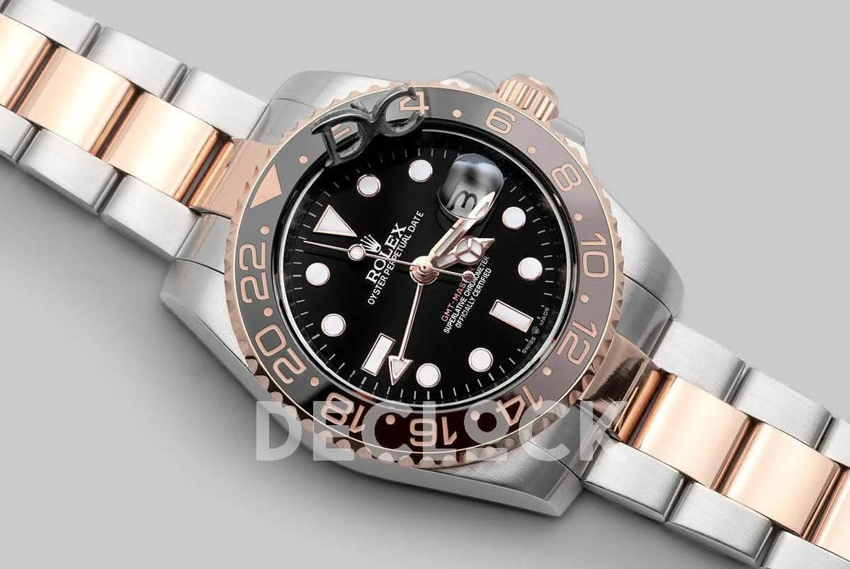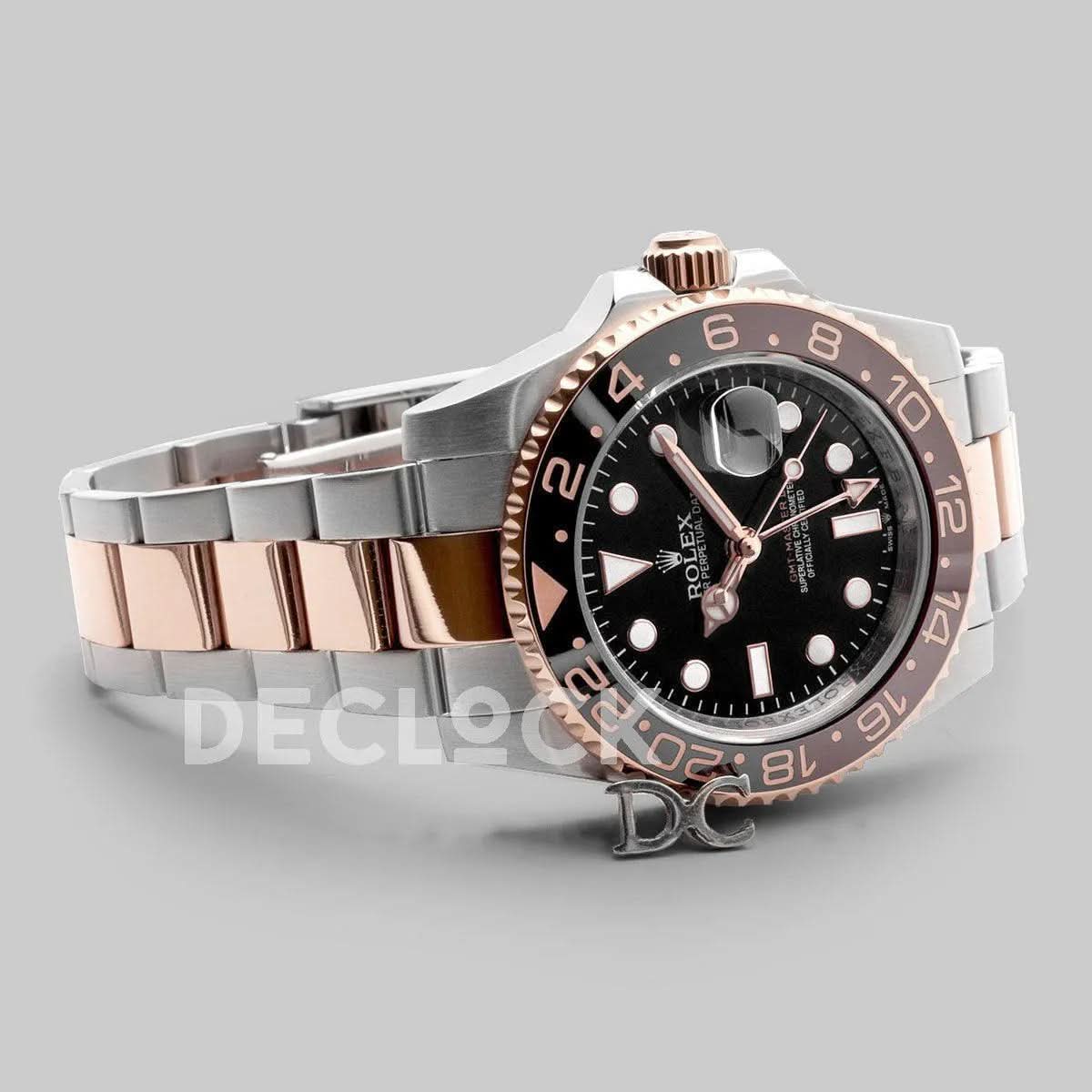 Μοναδική προσαρμοσμένη αναπαραγωγή του 116710 Rolex GMT Master II Two Toned Rose Gold σε μπρασελέ.