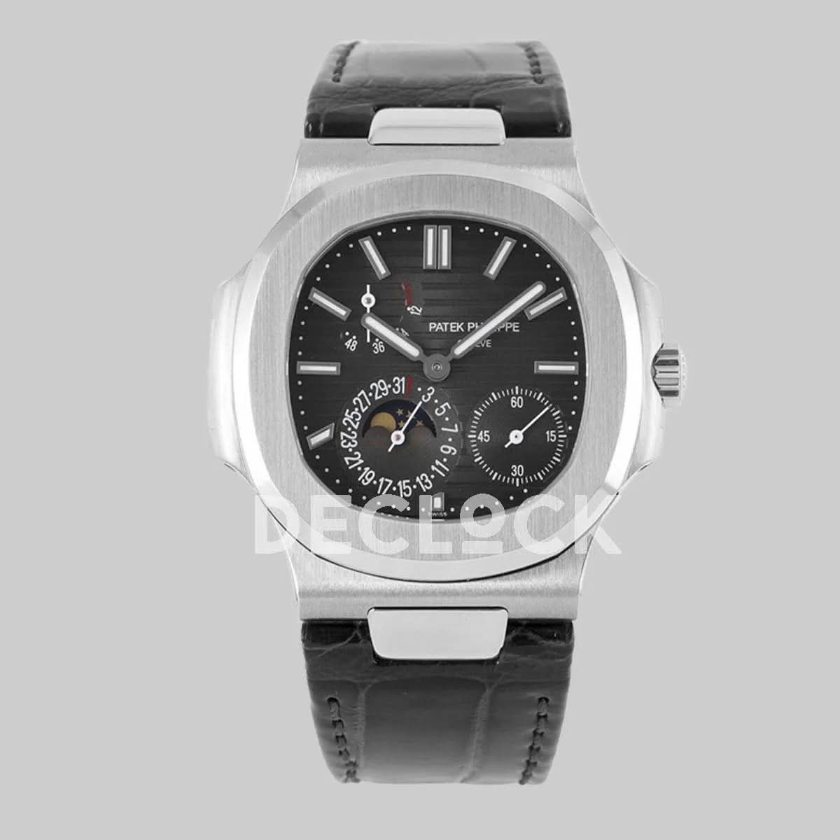Replica Pattek Philippe Nautilus 5712 Steel Gray Dial on Black Leather