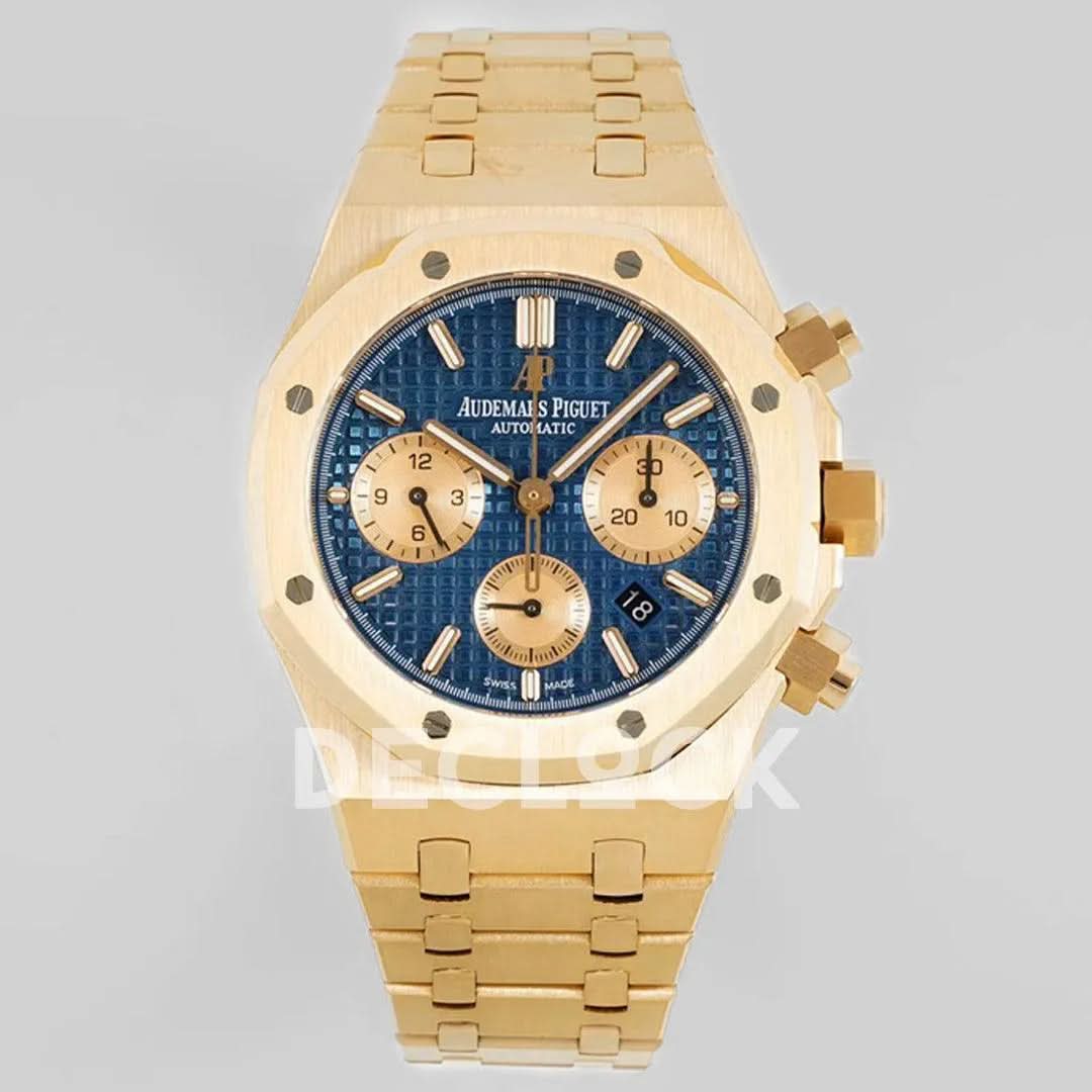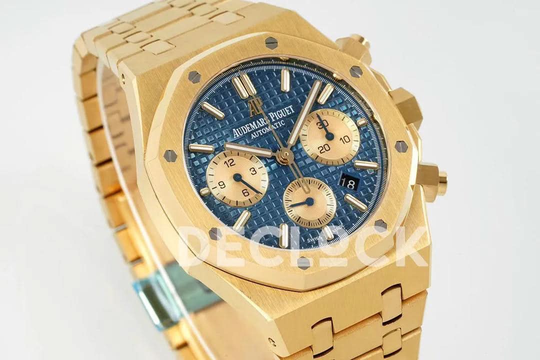 Replica Audemars Pigeut Royal Oak Self-Winding Chronograph Blue Dial in Yellow Gold